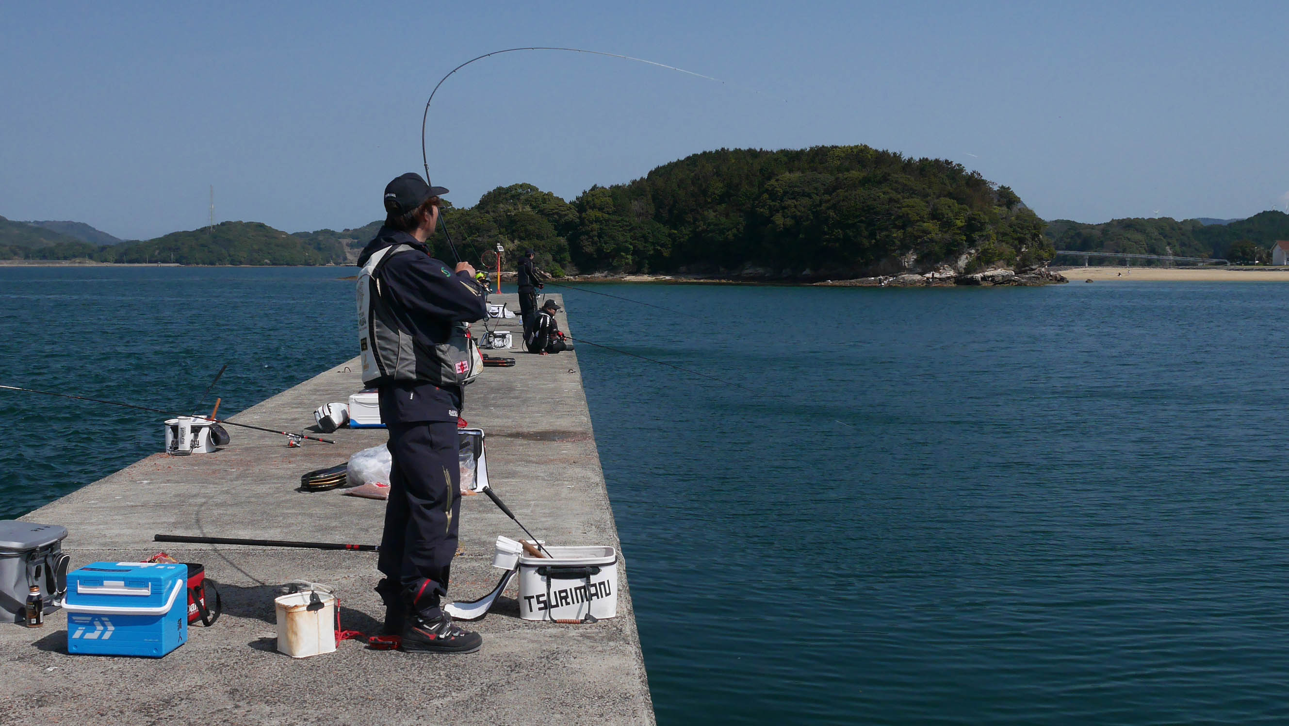 私達は6名で沖の波止へ上がってチヌ釣りを楽しみました。