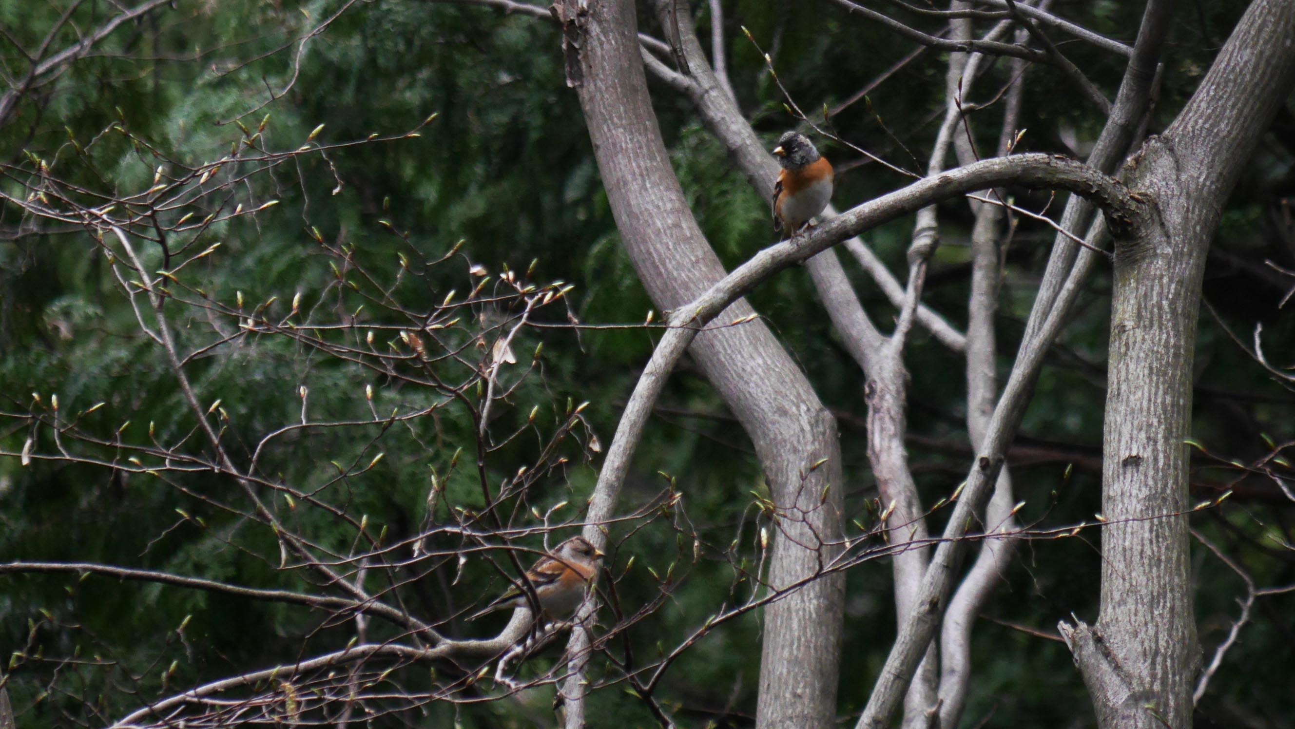 今朝のアトリのオスメス(冬鳥)