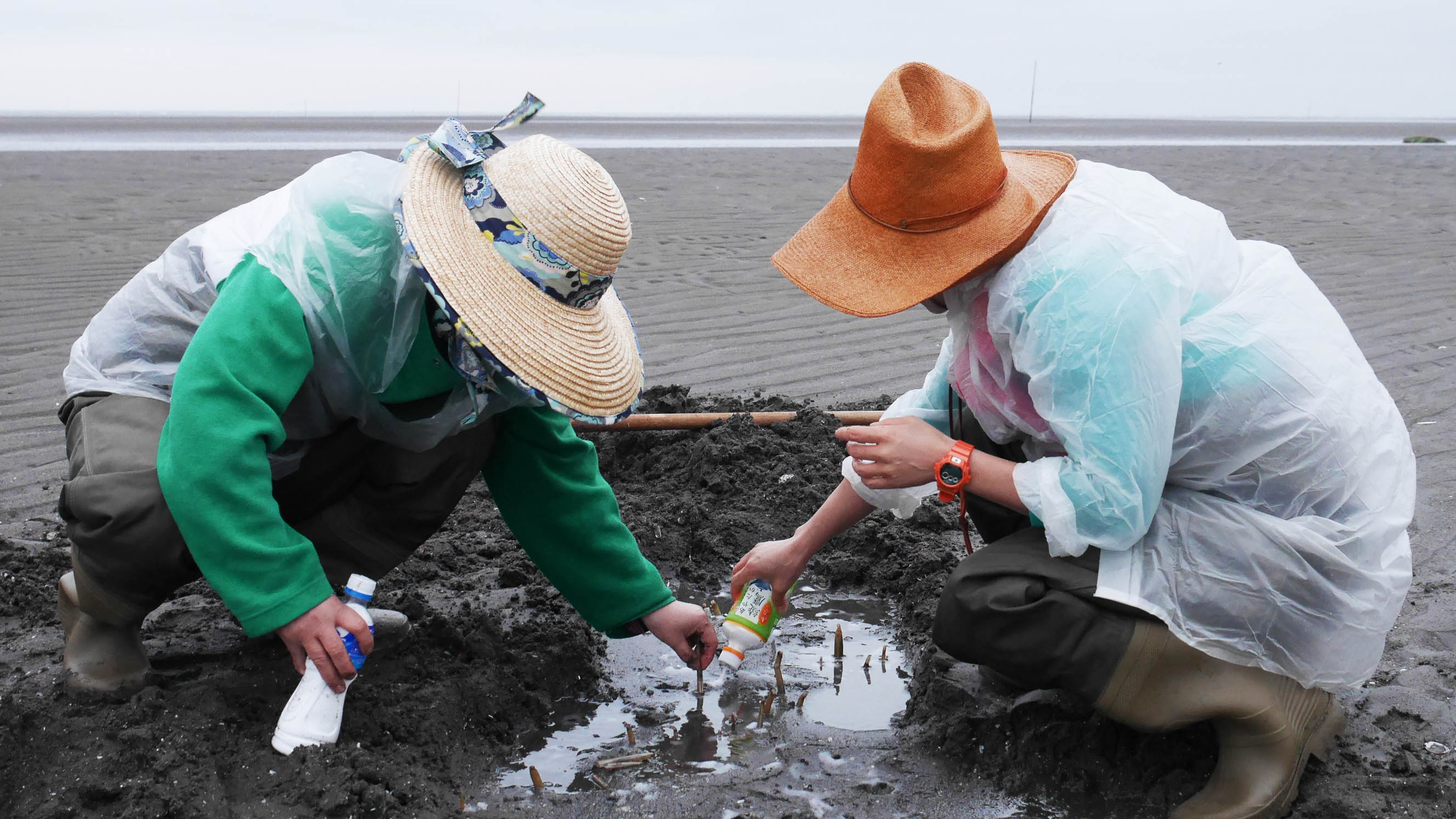 YY女子部の2名と和間海岸へマテガイ掘り。