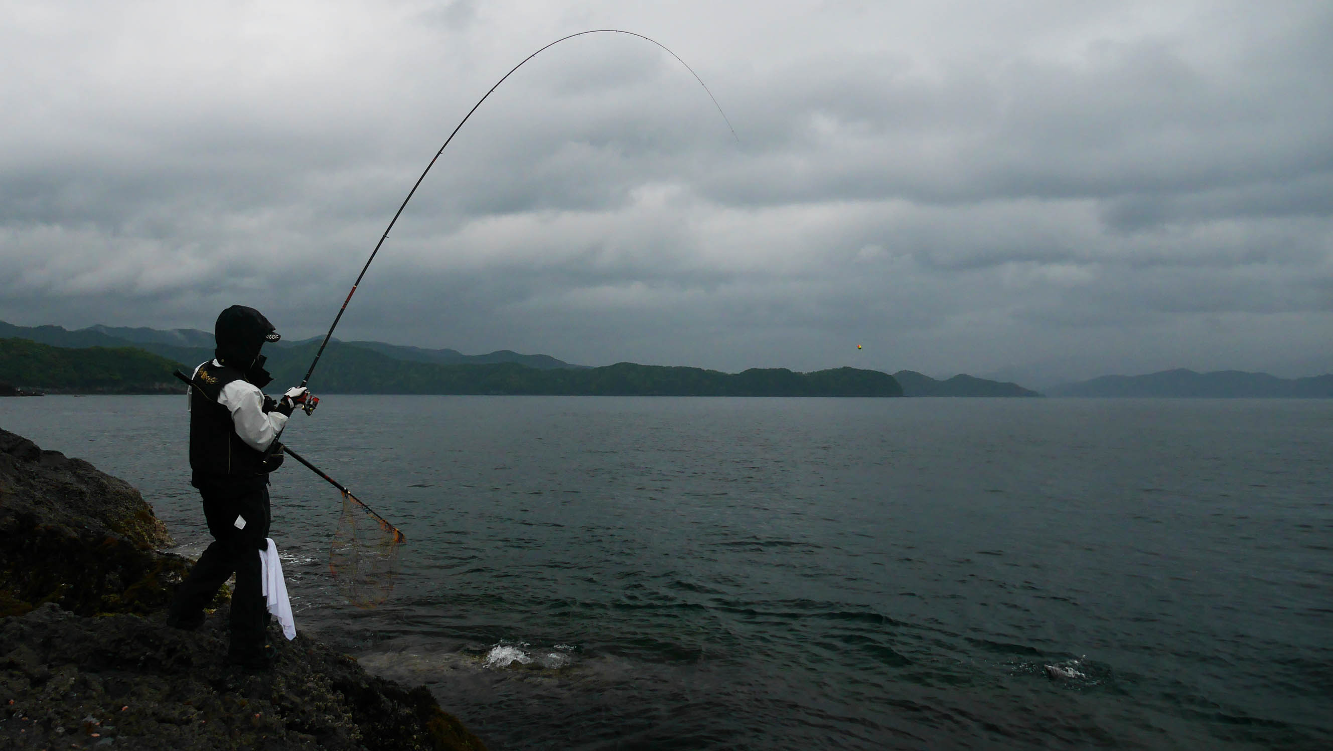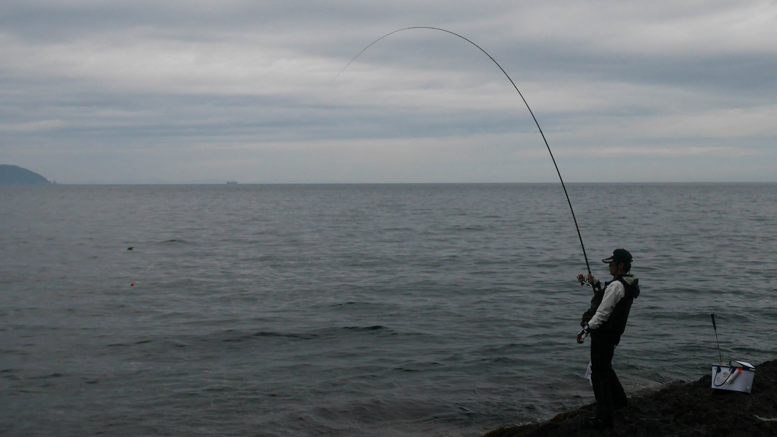潮止まり前後は潮が右から左へと動きましたが、満ち潮になると下げ潮と同じく、左から右へと流れ始めて再びチヌラッシュ。11時頃から14時頃までは風雨も強くなりましたが、チヌがコンスタントに当たるので14時過ぎまで傘を差しながらチヌ釣りを楽しみました。