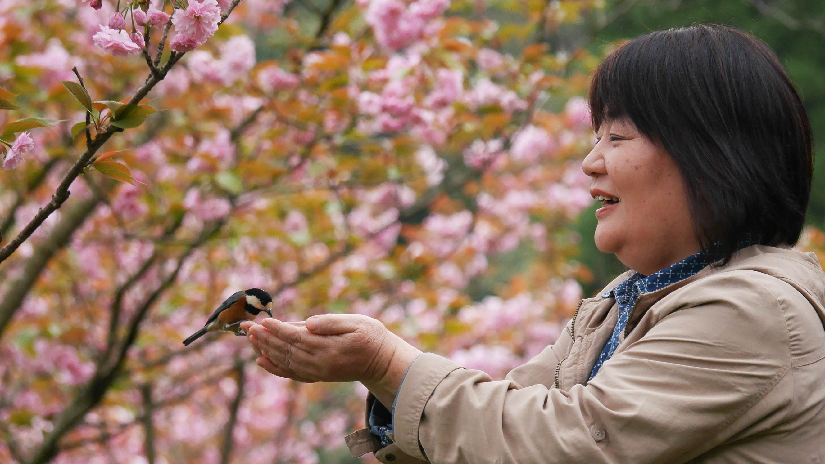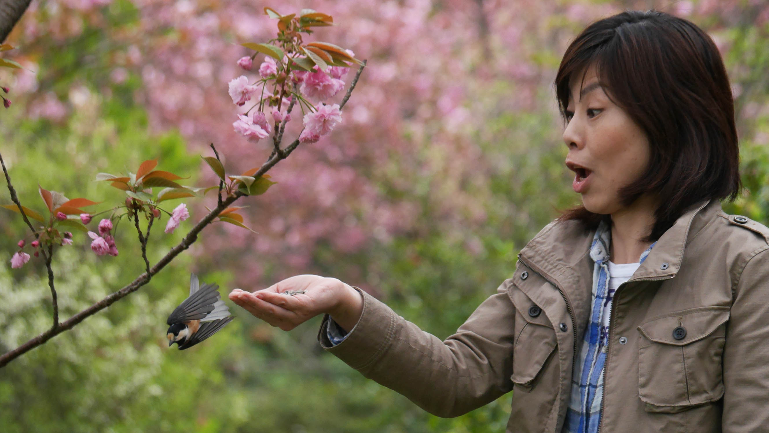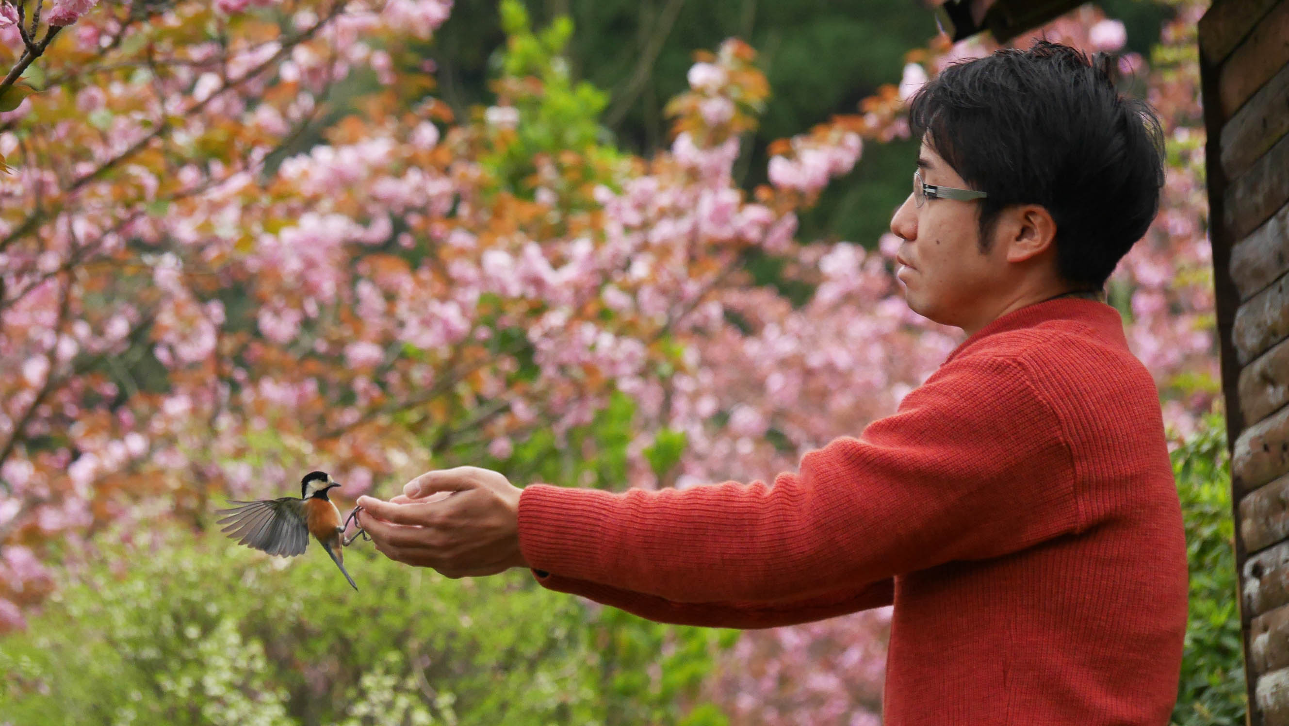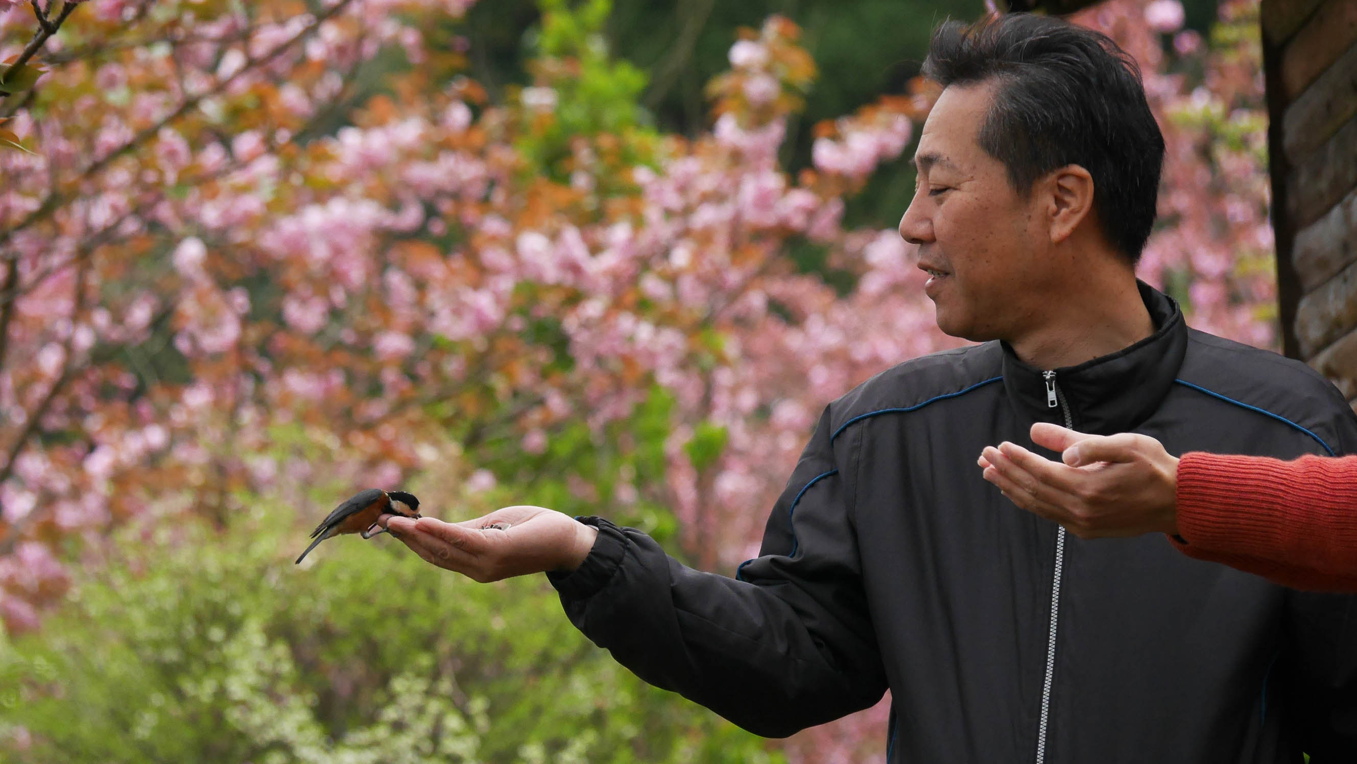 3月の桜の花が咲く頃からヤマちゃん達は縄張りを持ち始めるため、ヤマガラハウスに来る個体数は徐々に減って来て、触れ合い体験は終盤を迎えます。