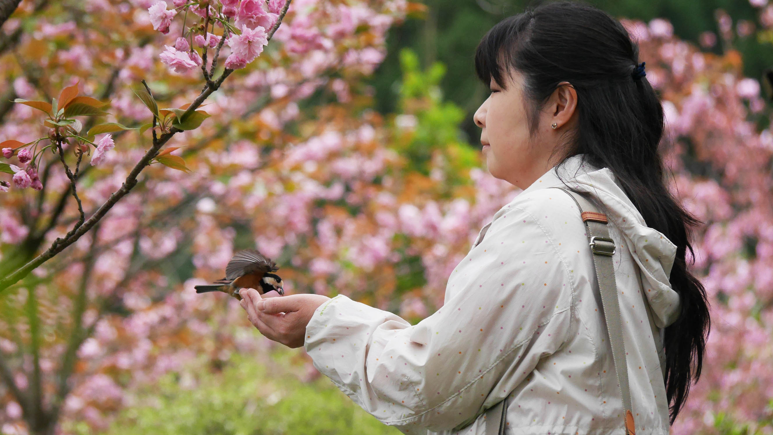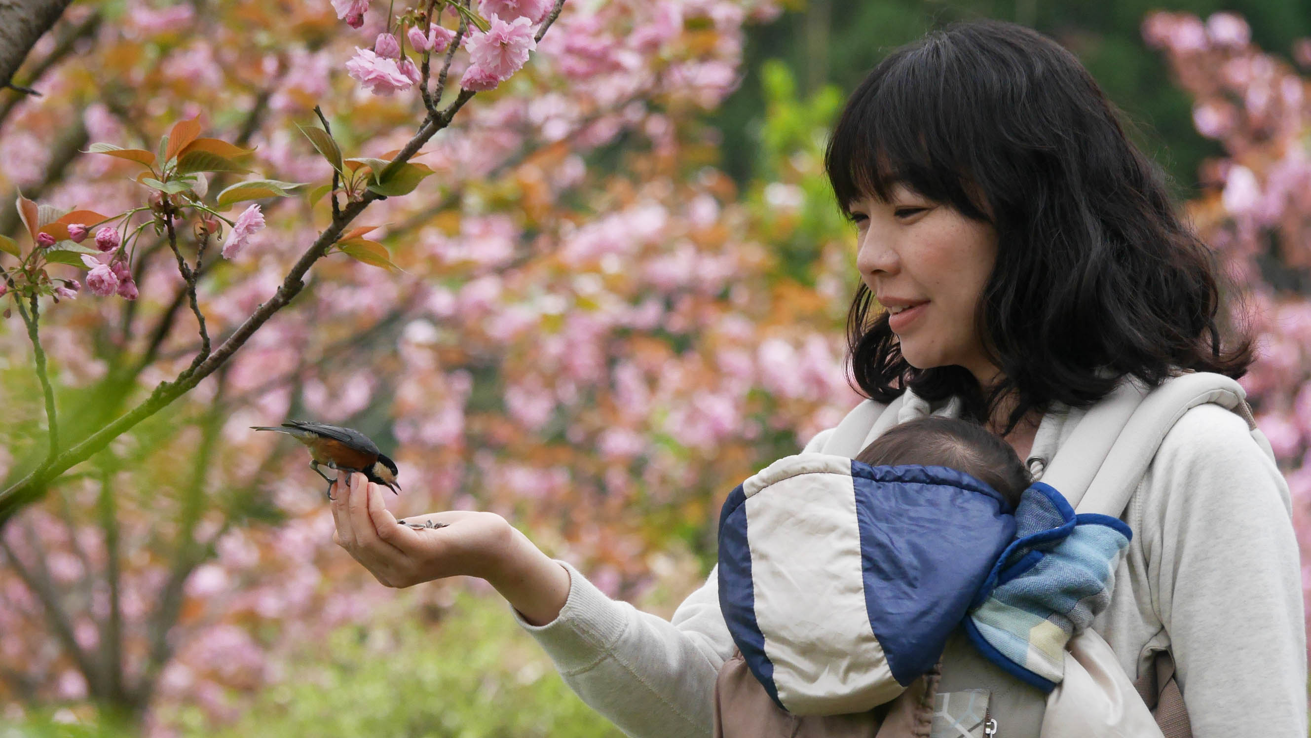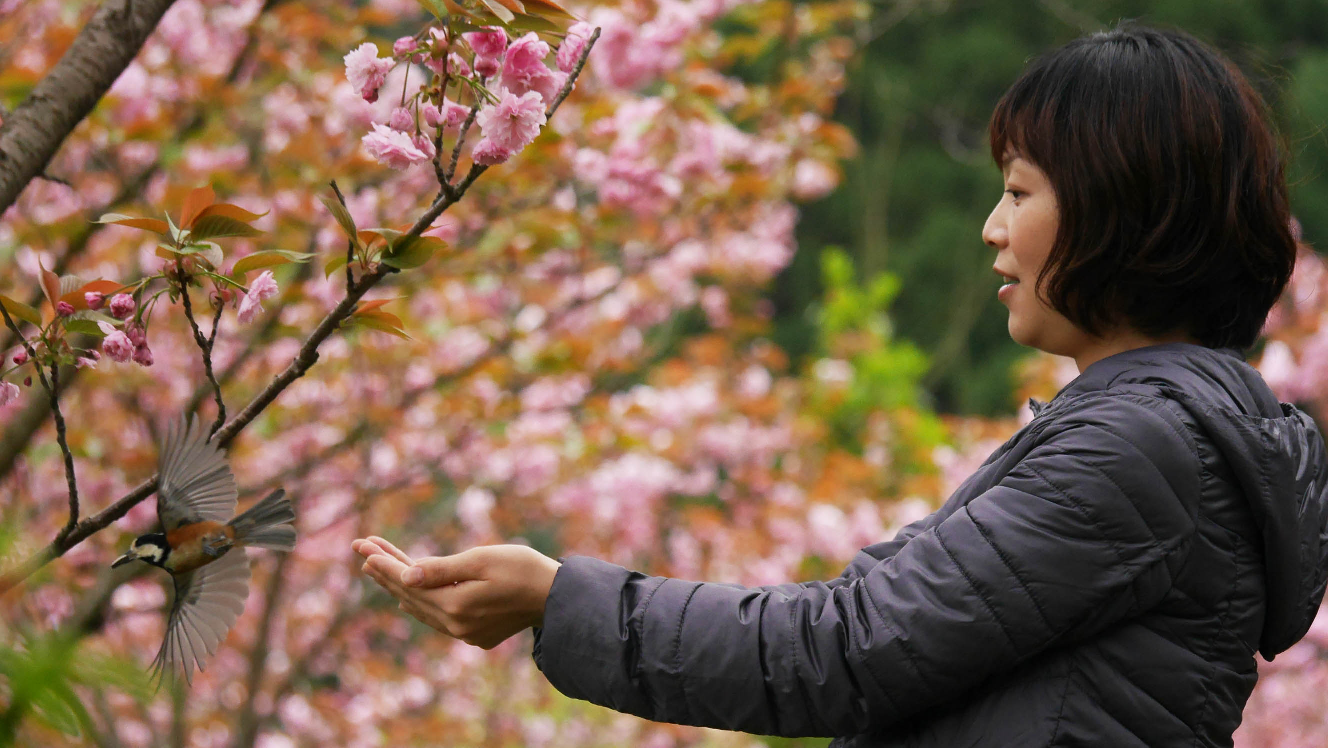 3月の桜の花が咲く頃からヤマちゃん達は縄張りを持ち始めるため、ヤマガラハウスに来る個体数は徐々に減って来て、触れ合い体験は終盤を迎えます。