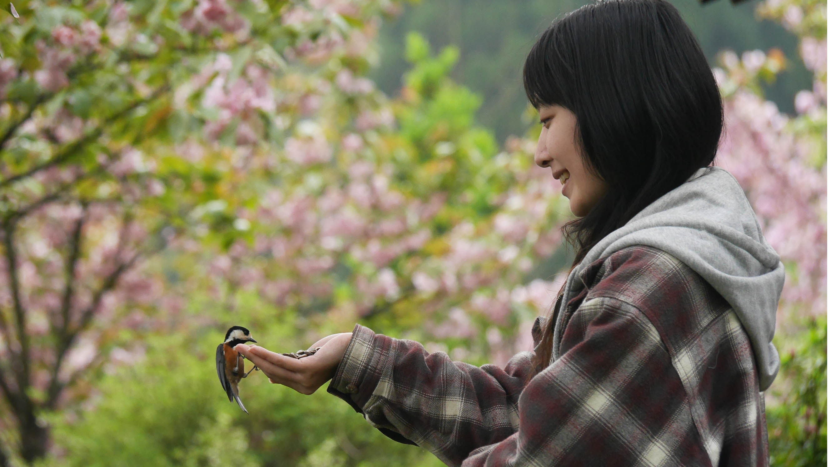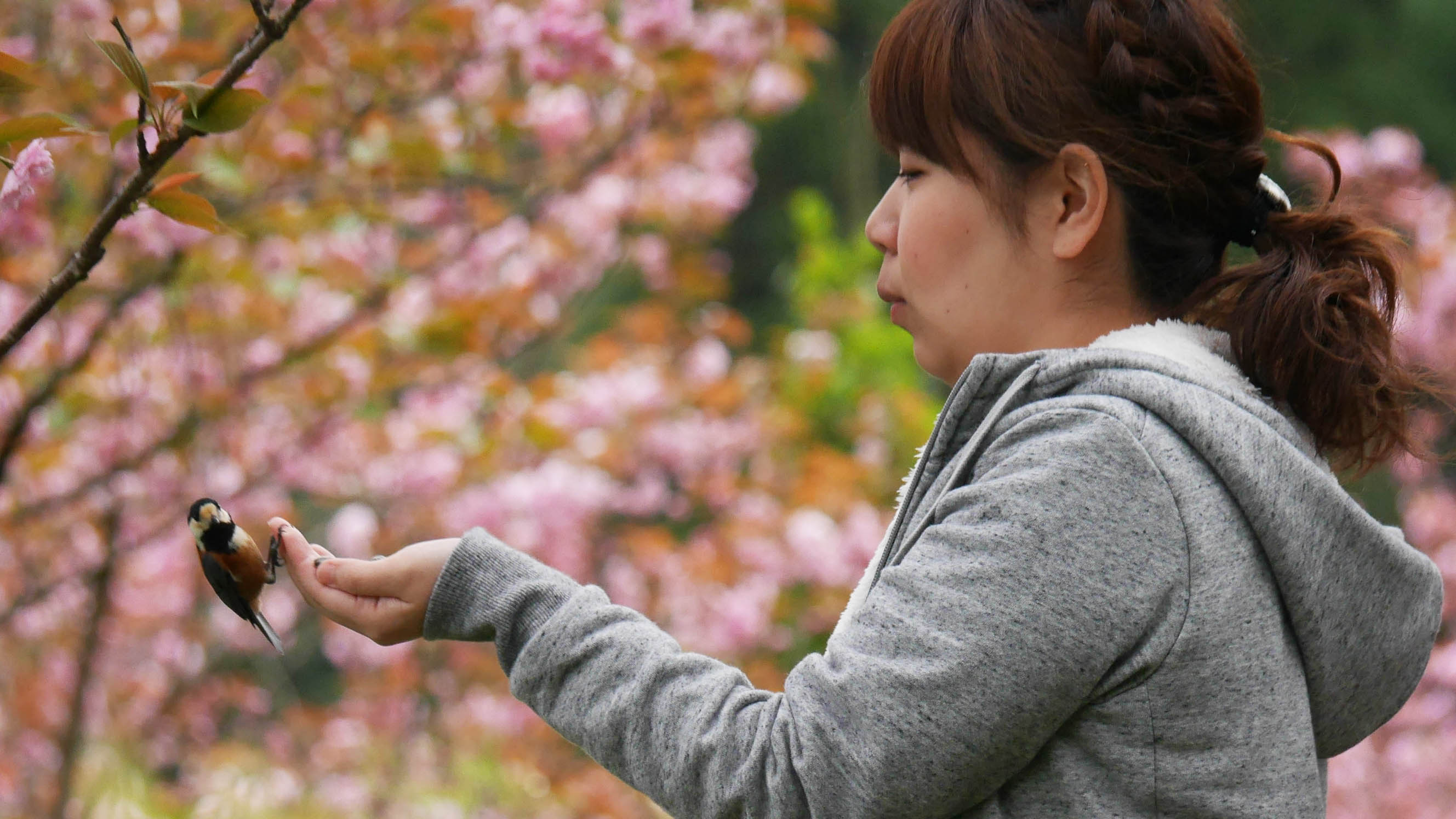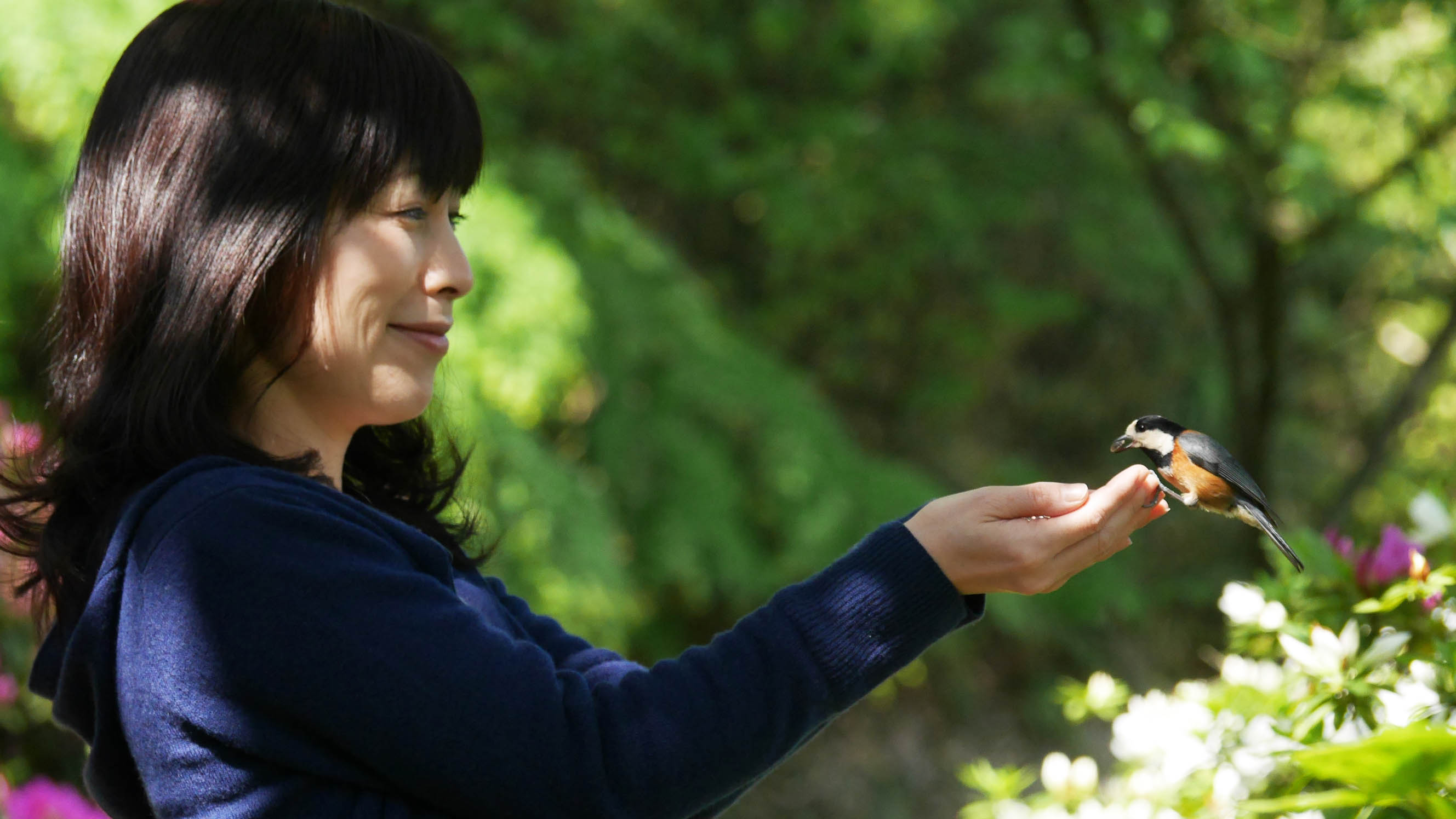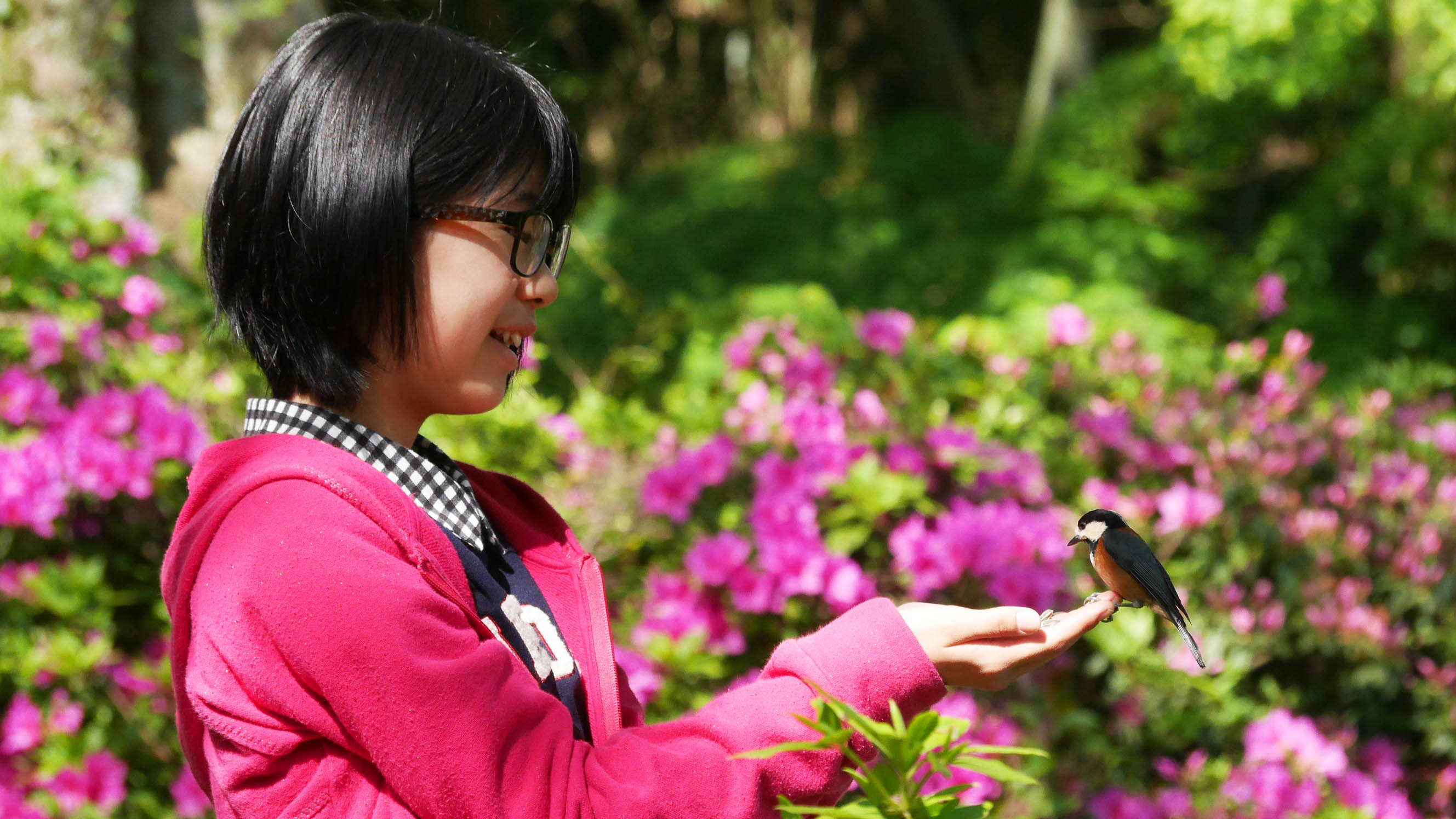 3月の桜の花が咲く頃からヤマちゃん達は縄張りを持ち始めるため、ヤマガラハウスに来る個体数は徐々に減って来て、触れ合い体験は終盤を迎えます。