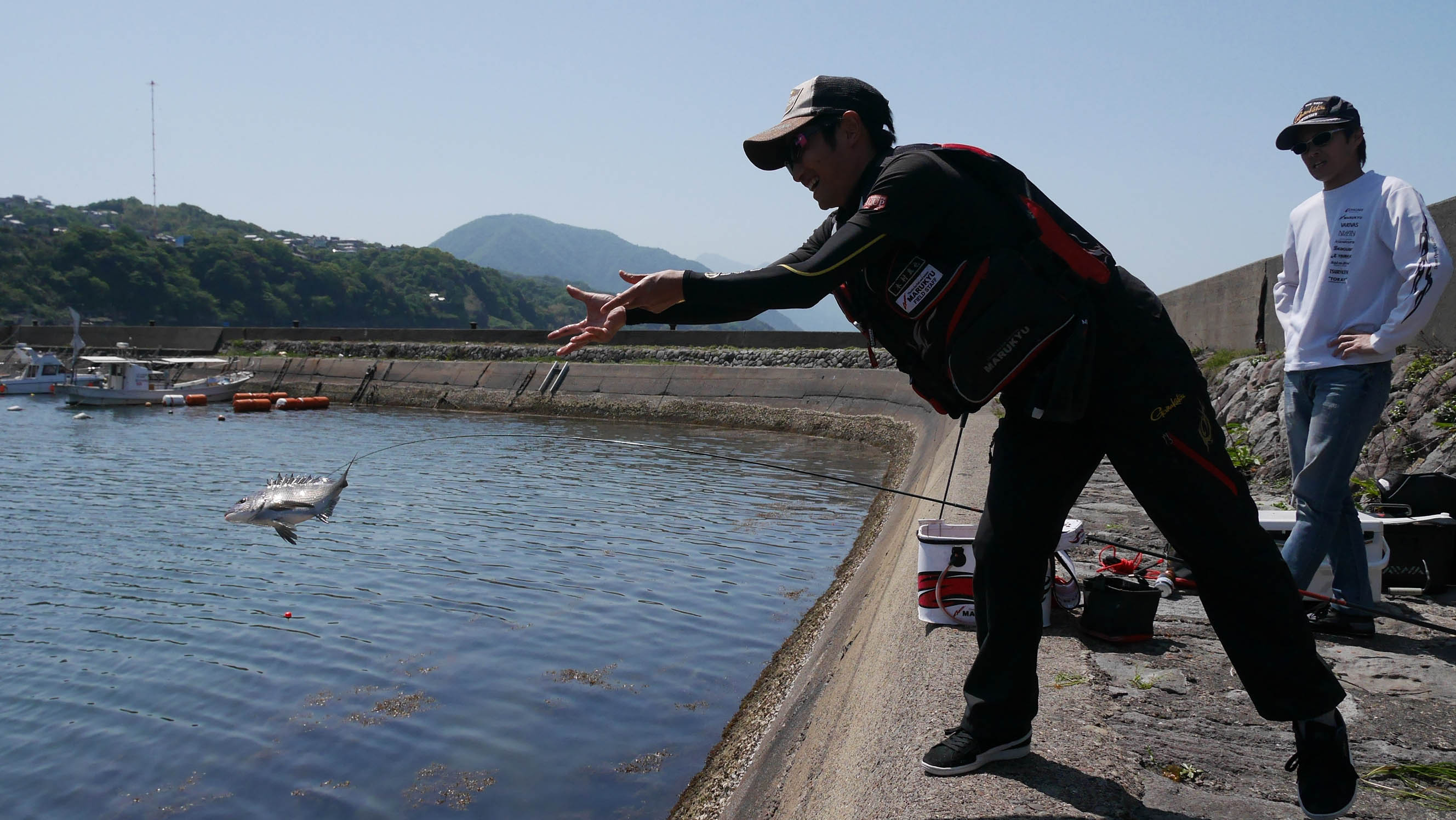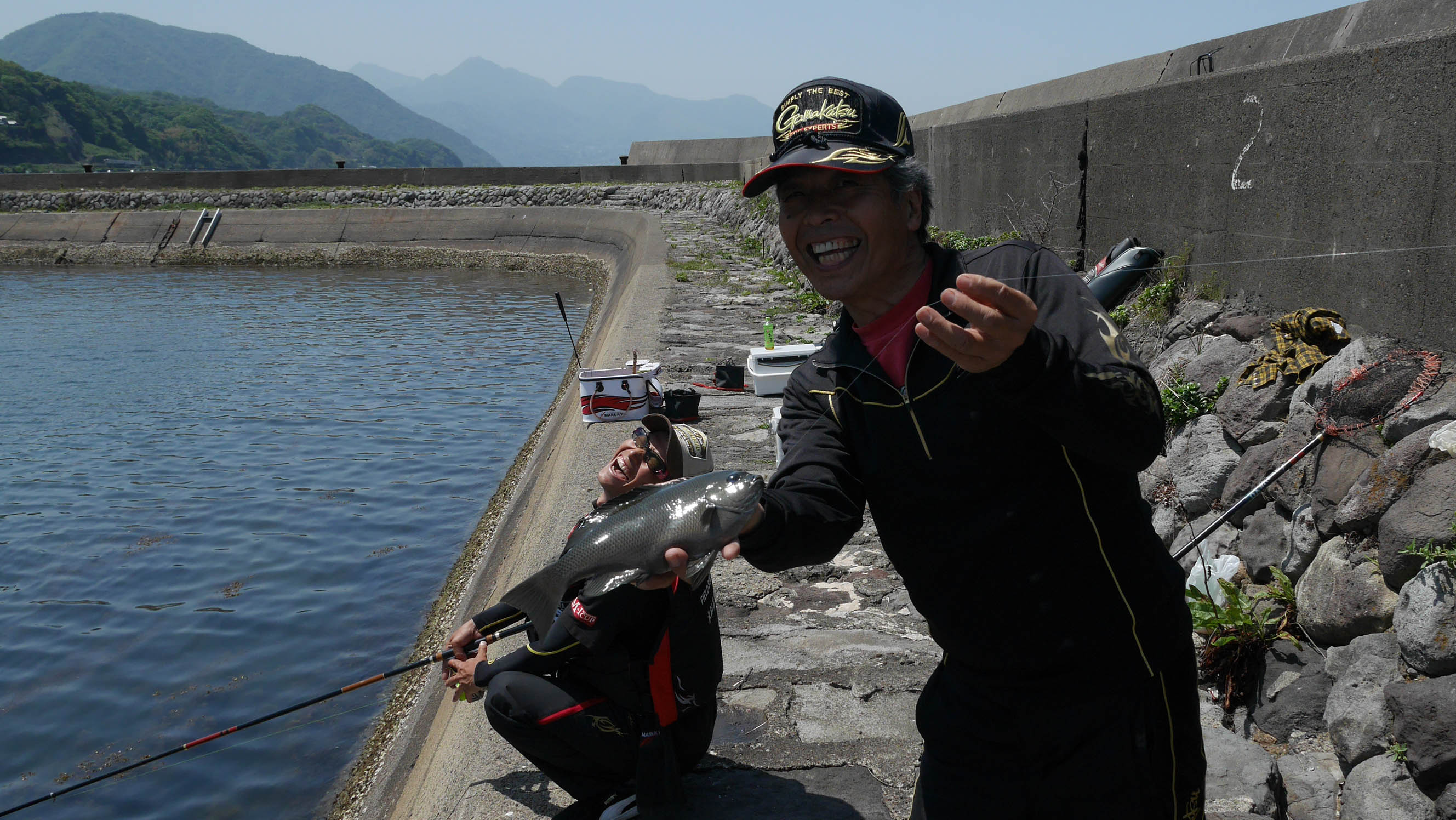 私のチヌ釣りはグレ釣りの延長で、レクチャー出来る様な代物ではないので、今回の指導者に木村君を抜擢。福山君に彼のチヌ釣りを教えてもらいました。
