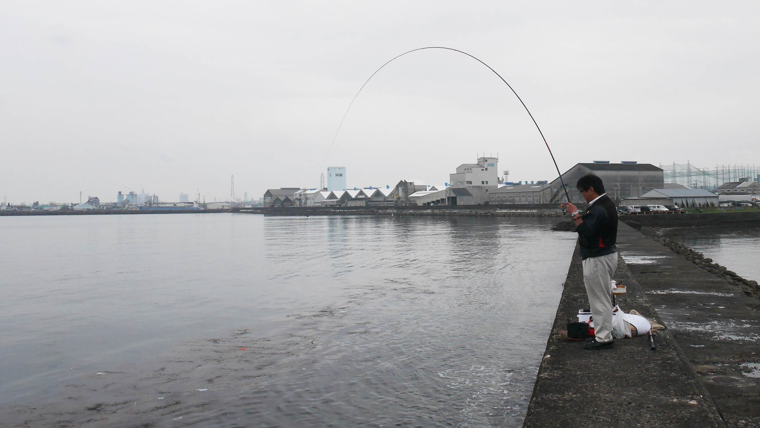 一昨日の5号地での釣りはエサを用意したものの、竿は出しませんでした。昨日の雨が止んだ10時過ぎ、そのエサを持って向かった先は白灯台の中間辺り。