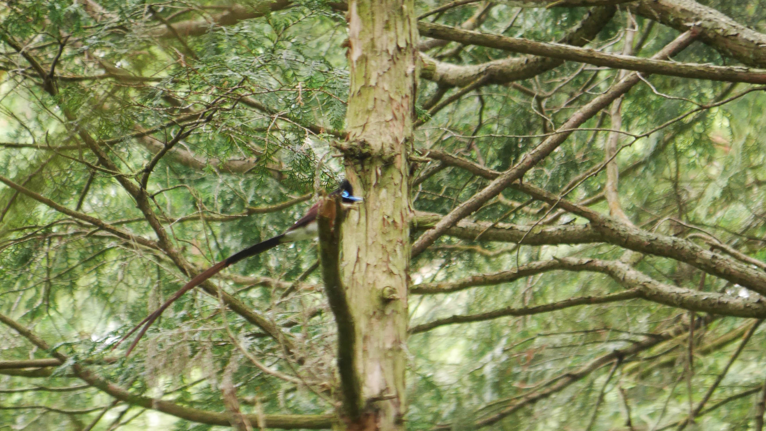 同じオスだと思う。暗い樹間で手持ちでは限界です