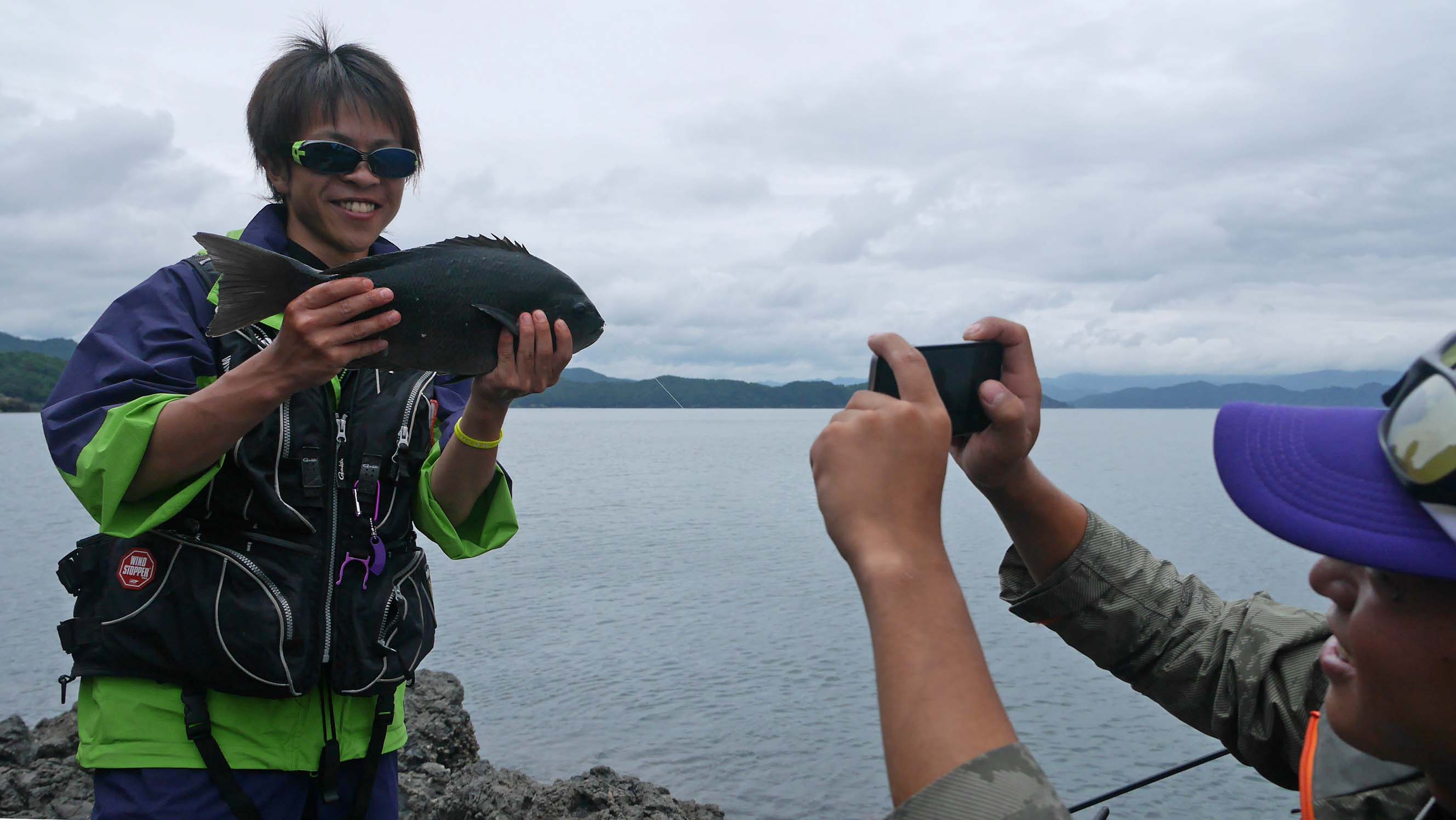 グレ釣り初挑戦の学生達でも、レクチャーが効くとキロ級も取り込めます。