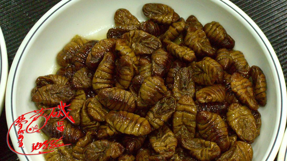 カニの料理店で出されたさなぎ。