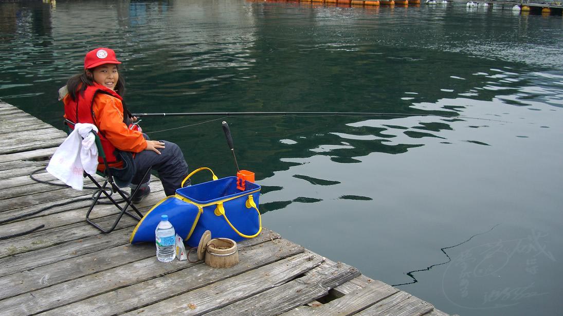 今回は以前、58cmのチヌを広島の友人が持った丸二水産のイカダで竿を出した。総勢7人で、その中に小学生のゆうなちゃんも混じっていた。