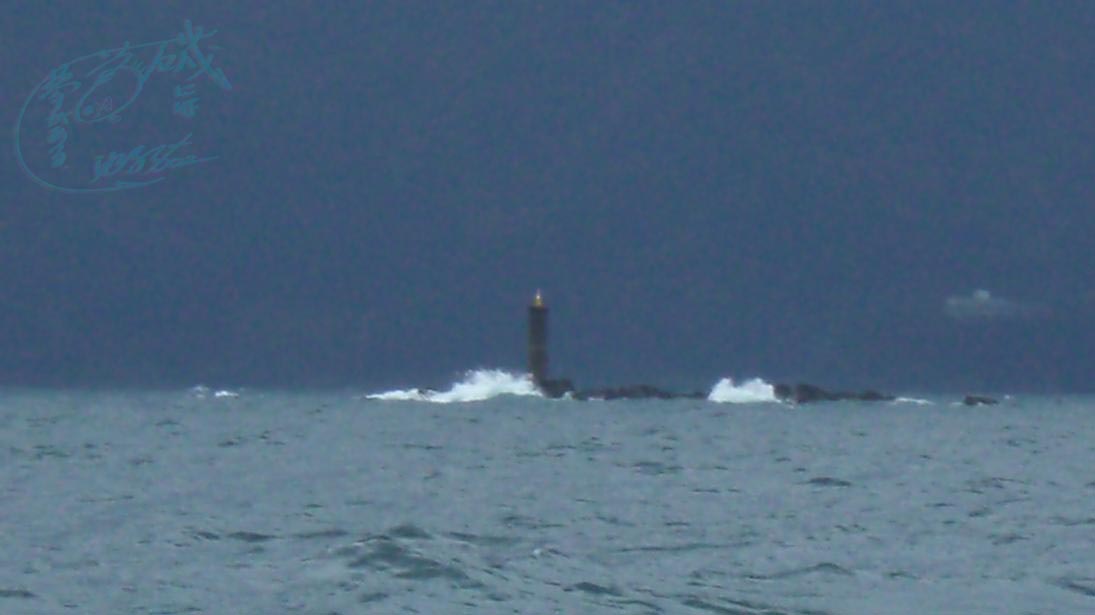 ココに釣人が1名、灯台に隠れて波の収まるのを待っています。