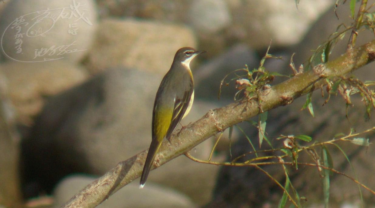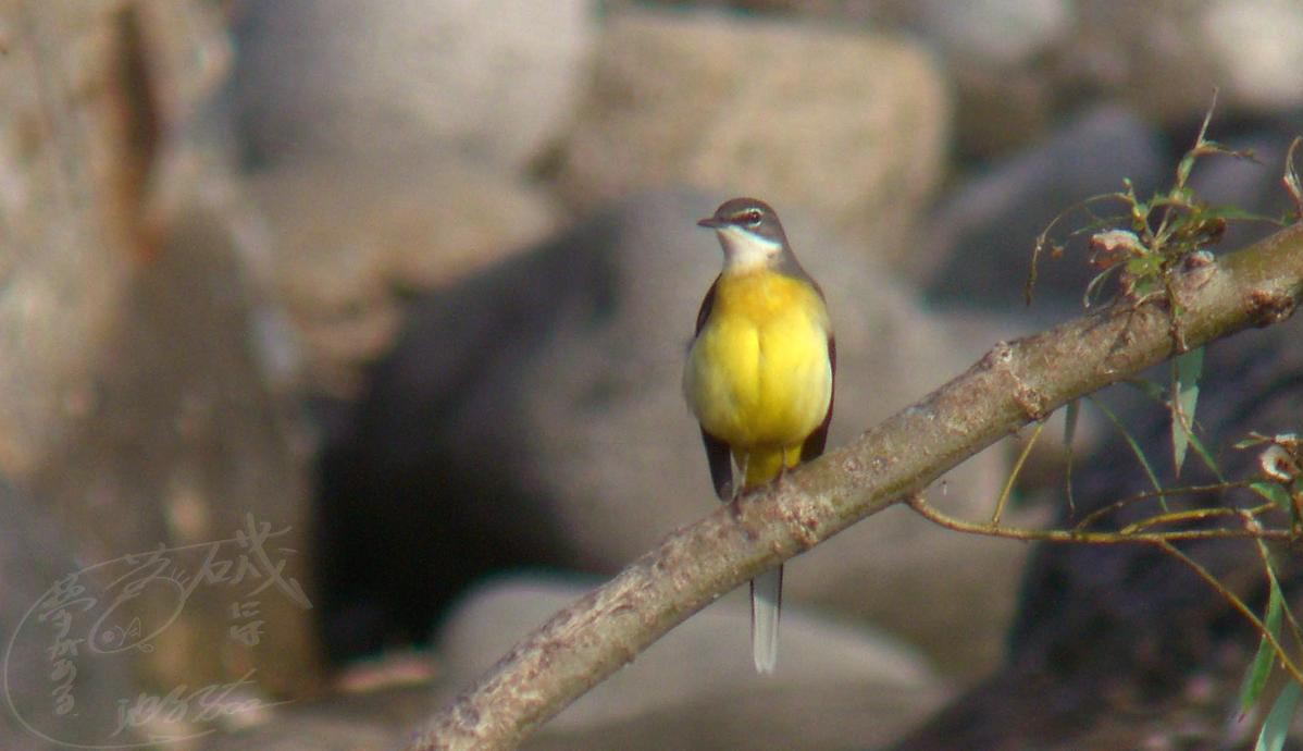 セグロセキレイやクサジギは放っておいて、キセキレイに的を絞り込んで追いかけます。通常は石に止まる事が多く、木に止まるのは稀です。