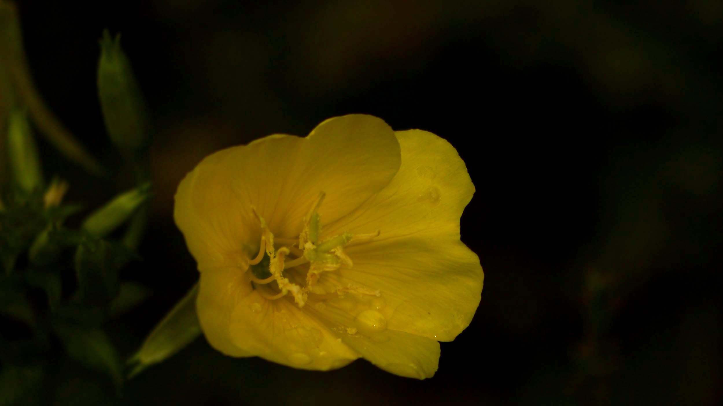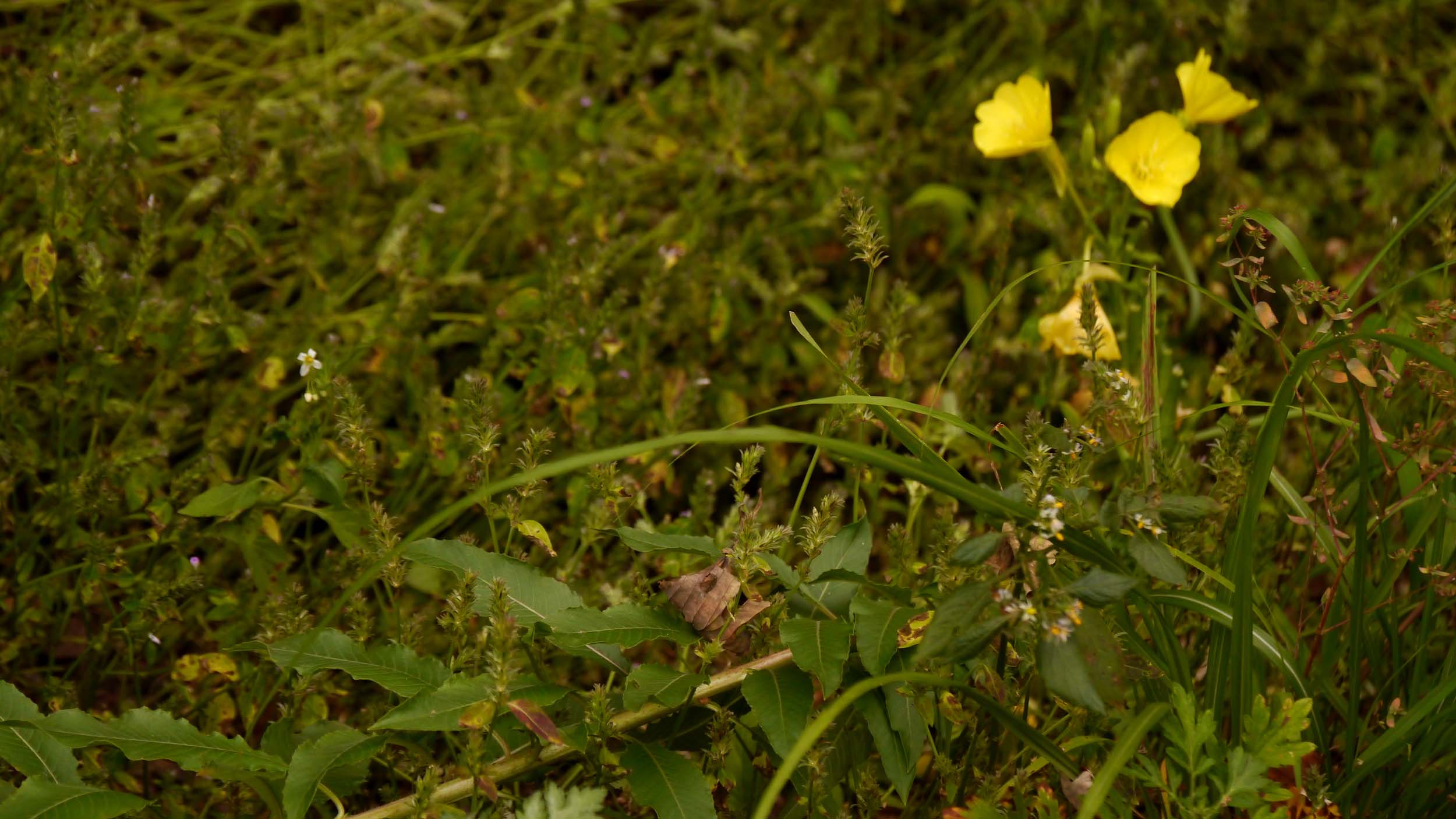 14時過ぎに見ても花が萎んでいない、オオマツヨイグサやコマツヨイグサ似の花。でも、茎や葉っぱを確認すると別物の花だと分りました。