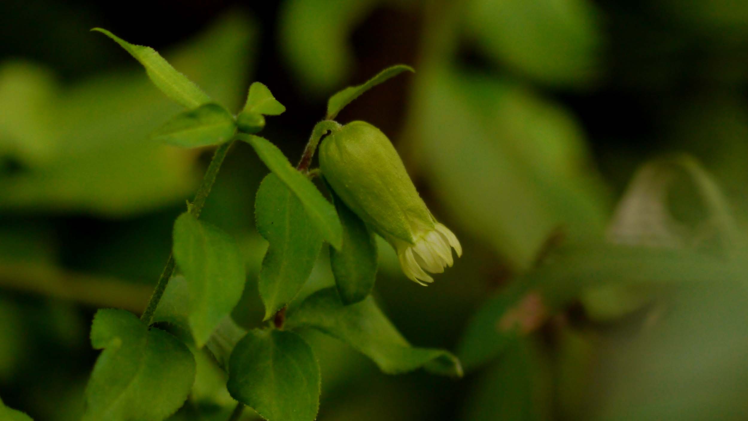 メ‐ルのやり取りの後、伺った場所を覗いてみると、確かに一輪の花が咲いていました。同じ蔓?からは、沢山の蕾がポツンポツン。