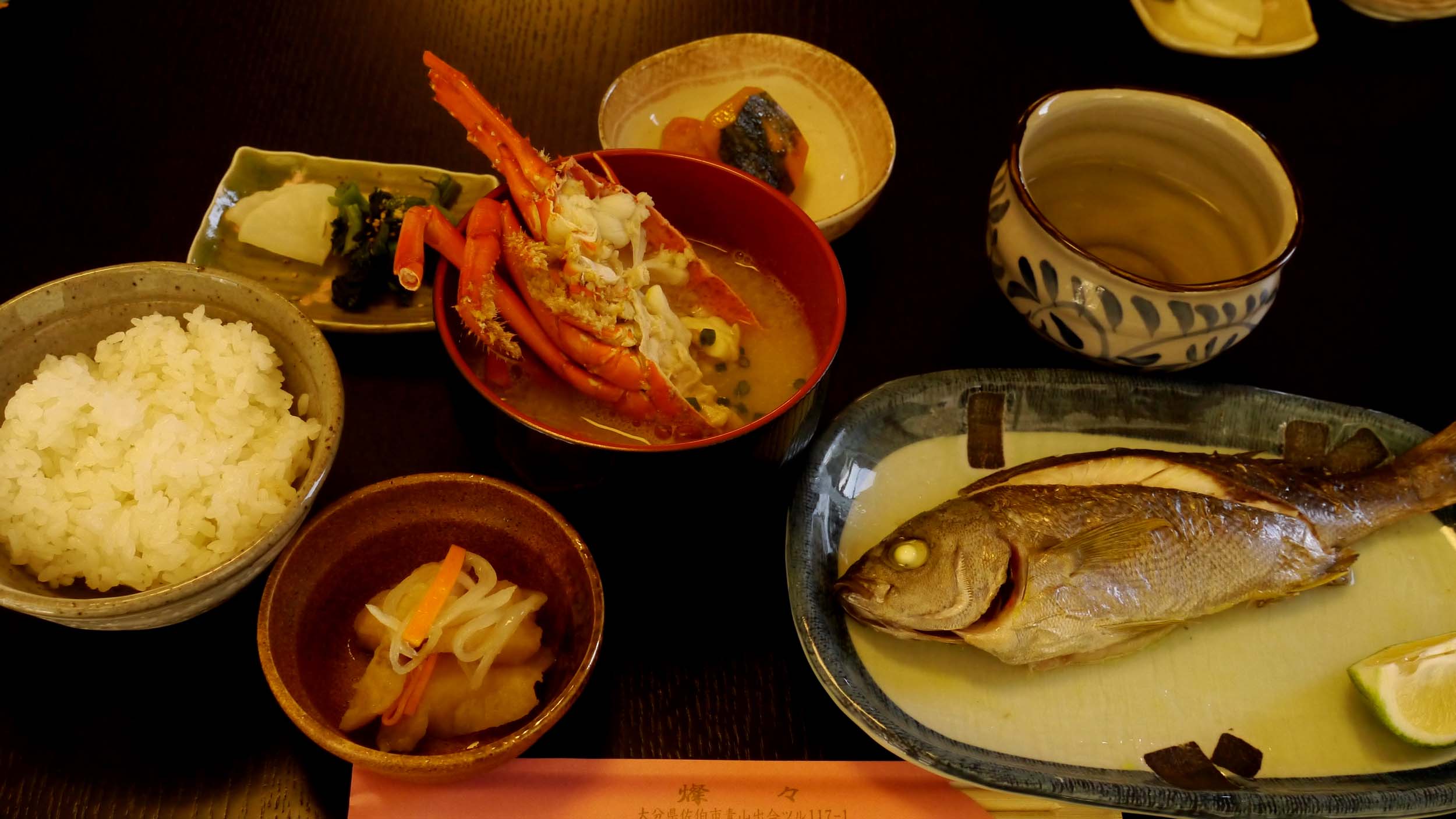 マダイ・チダイ・イサキの尾頭付きと、イセエビの味噌汁にはビックリ。