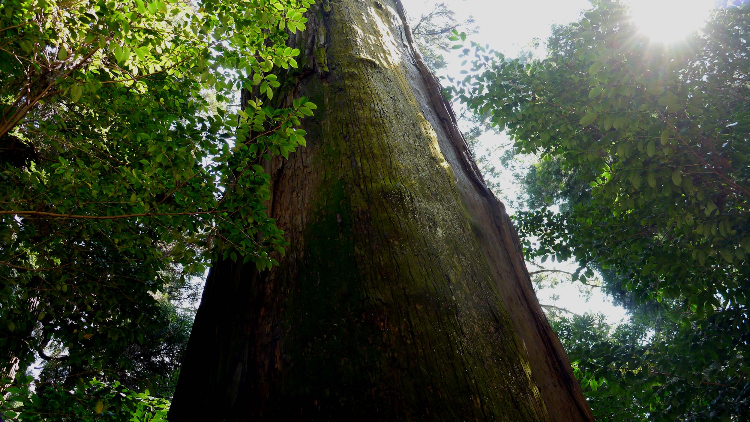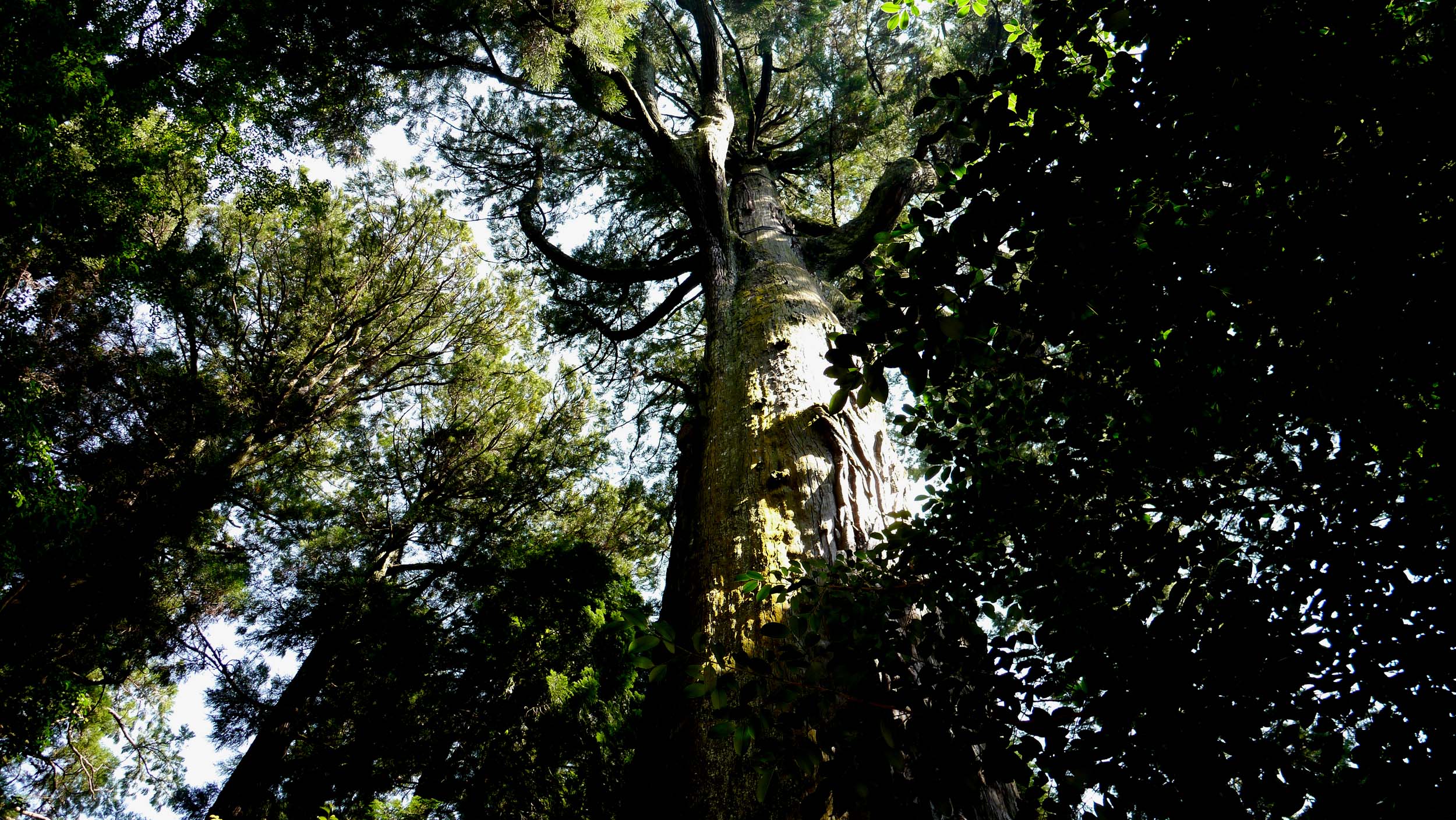 高千穂峡を諦めて、初めて神社にお参りしました。そこには別世界が広がっていました。大きな杉が何本もあり、神秘の空間です。