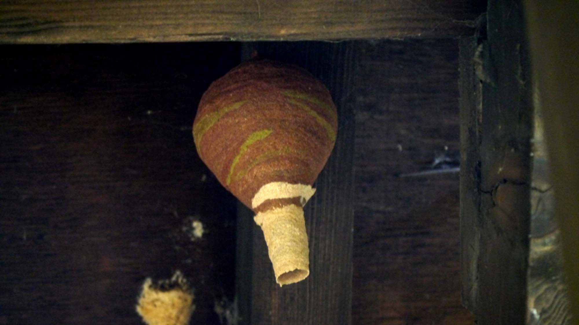 徳利を逆さまにした形のハチの巣。