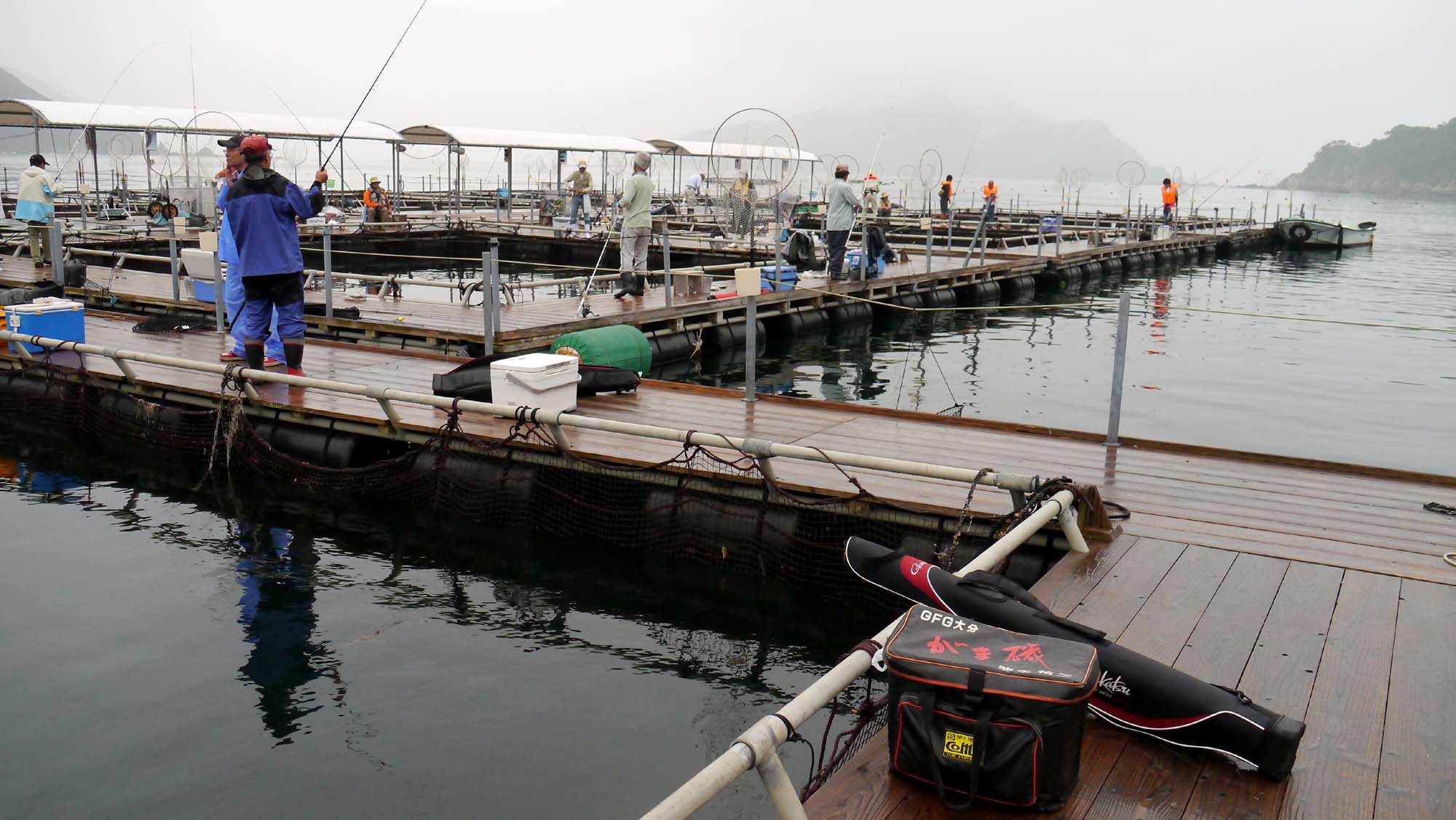 後は深く釣り過ぎて、イケスの底より下にサシエが落ち、それに魚が掛ってしまいました。糸を出すと引き、糸を巻き上げると一定の場所で掛ってしまったのです。