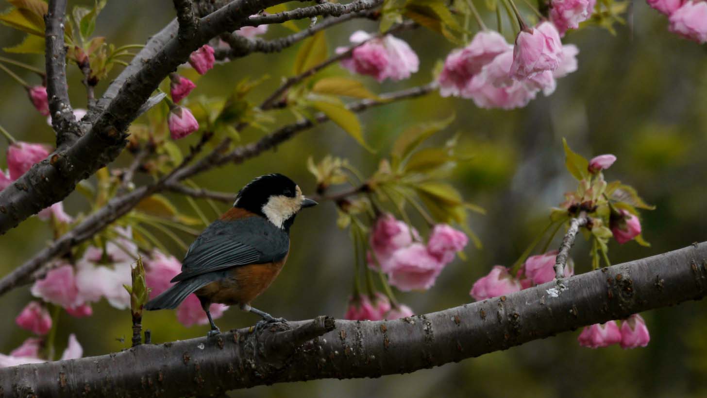 餌場のヤマガラ、花見に来たかな?