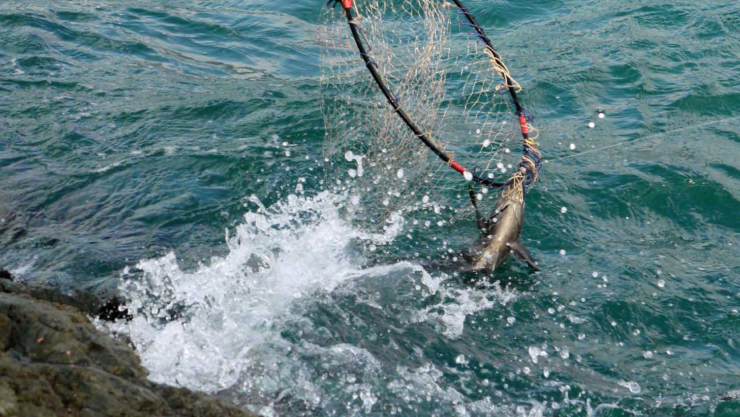 タモ入れの時、タモの枠を海中に半分以上浸け込まない事。
