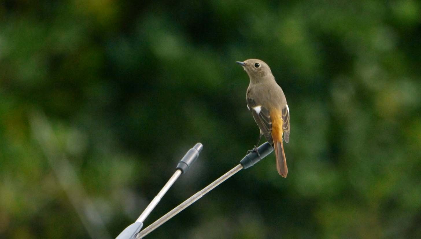 大会で広場に駐車している車、ジョウビタキのメスが偵察です