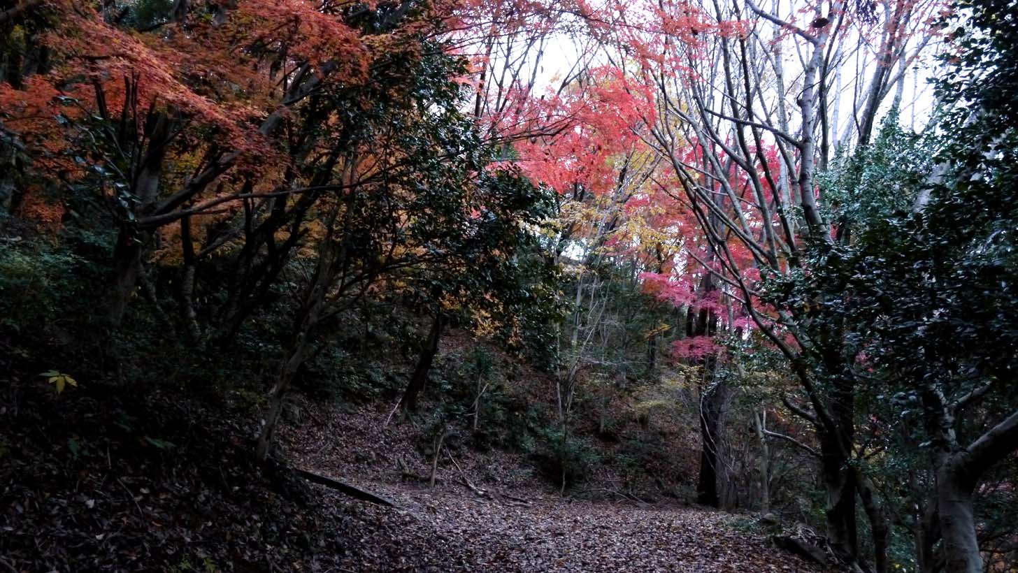 下の餌場と上の餌場に、それぞれプレゼントのヒマワリを置きました。更に上で、赤はモミジ・緑にクマザサ・黄色に自然薯・花は寒椿、を結果的に採取です。