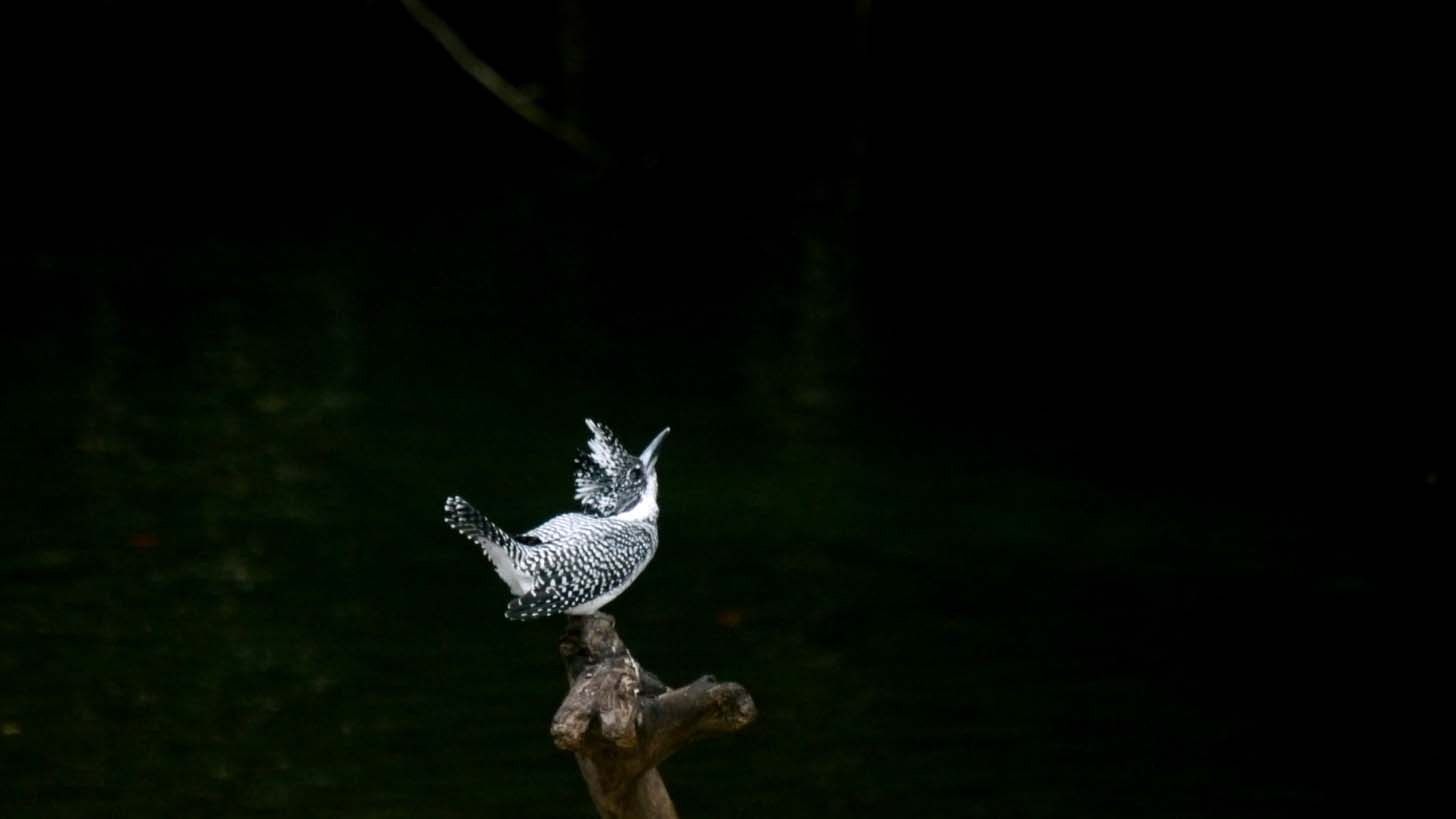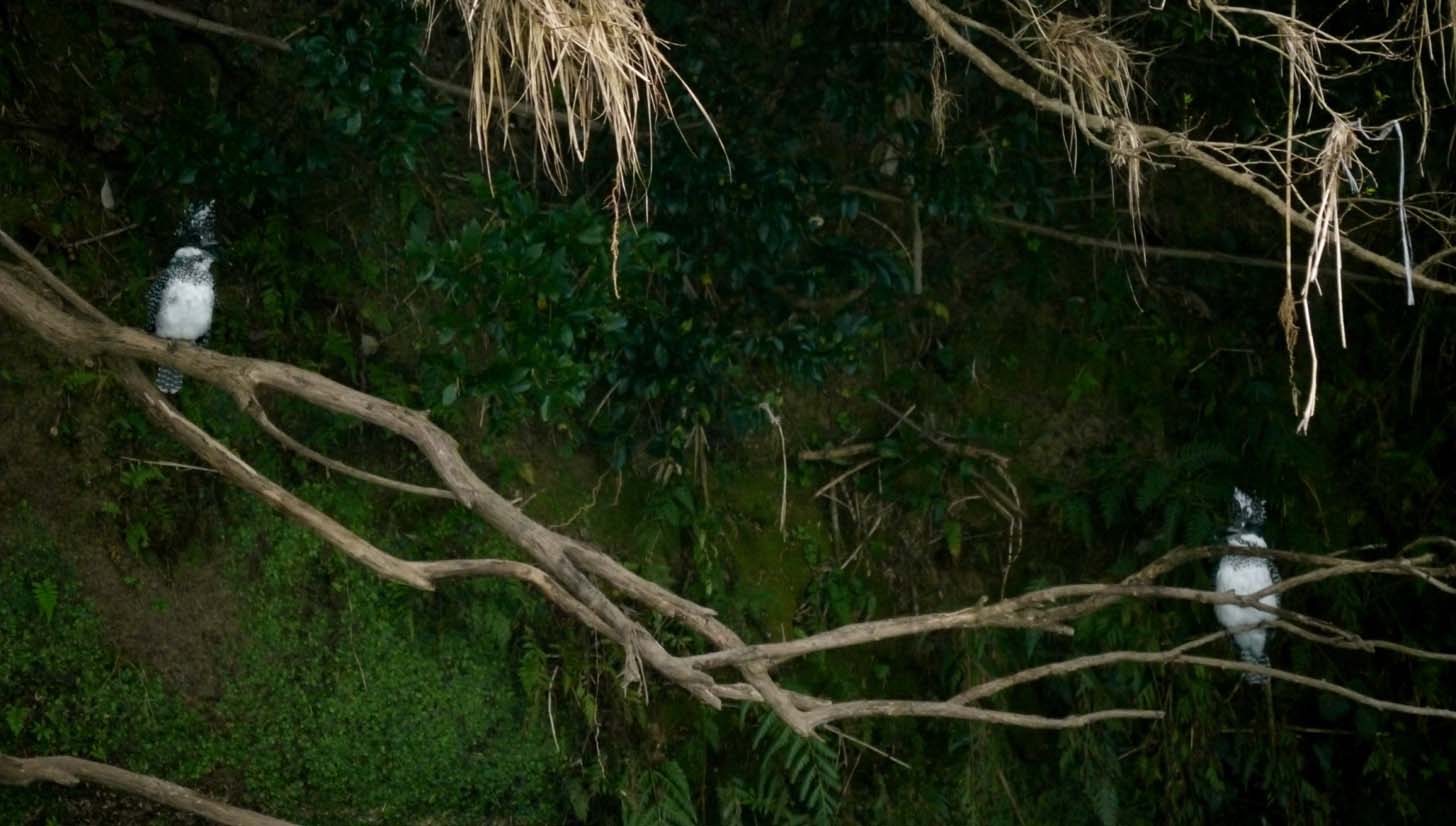 今日の朝一番は、一人で本部基地に居ました。ヤマセミの若カップルと一羽のメスの合計3羽が飛び交っています。