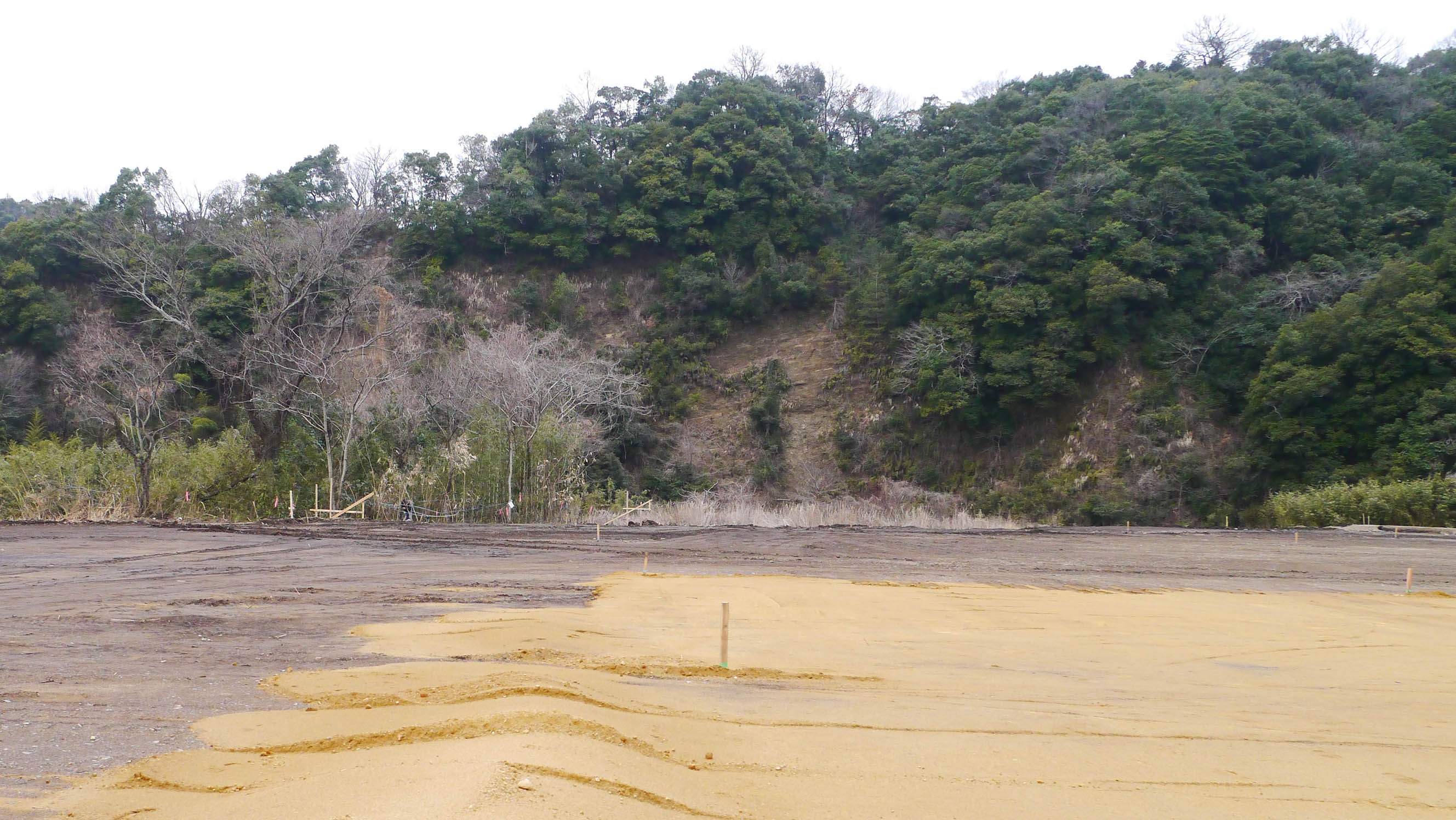 工事現場からユキワリイチゲの保護区を・・