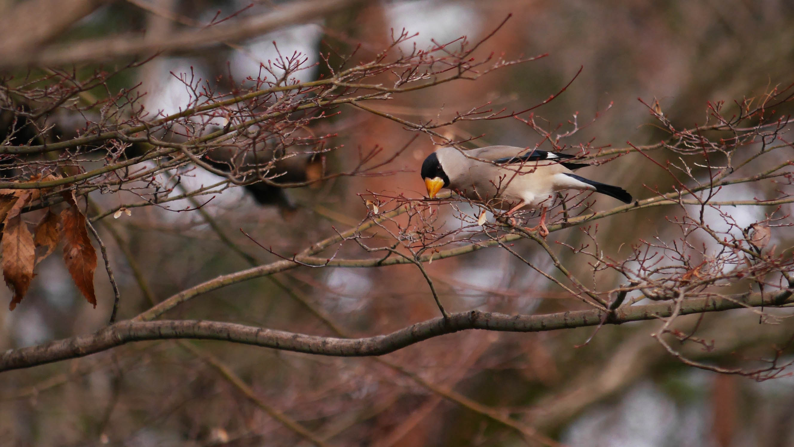 イカル、小群でモミジの芽や種などを探していました