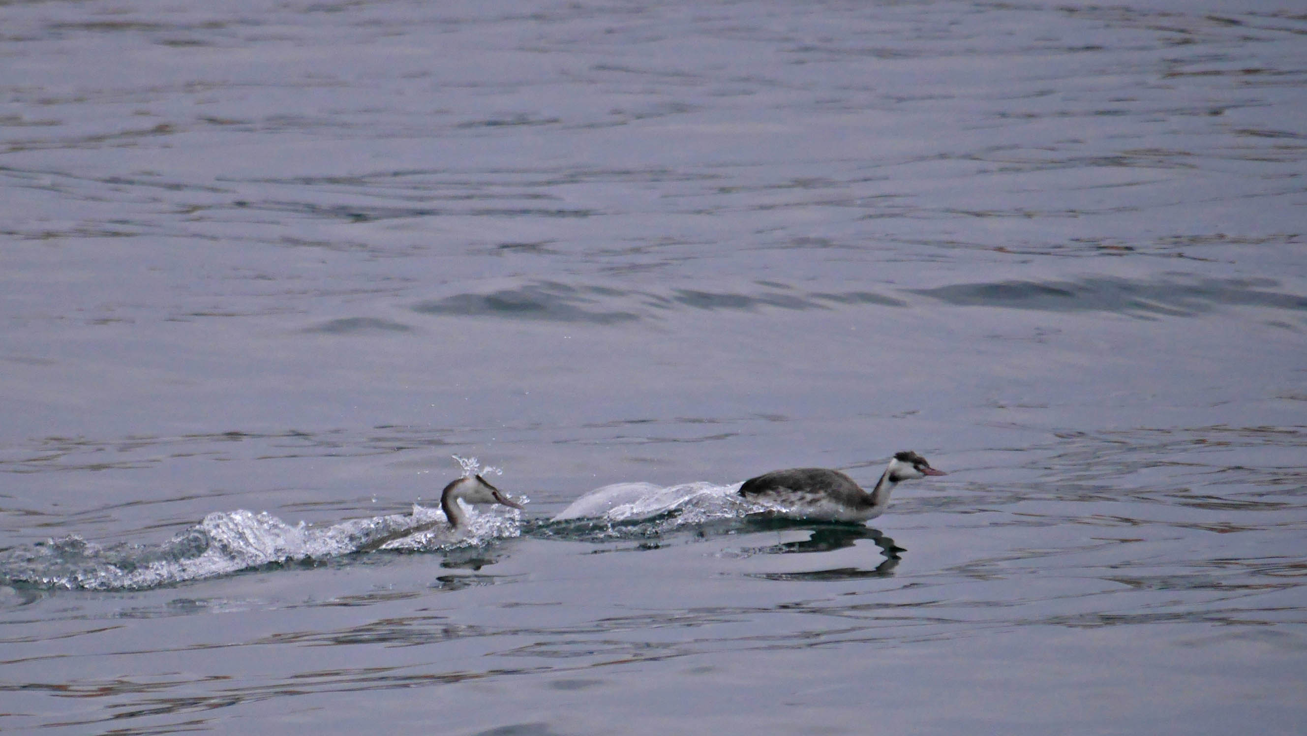 この時は一羽が威嚇して潜ったので、もう一羽を攻撃すると思ったら正解でした。