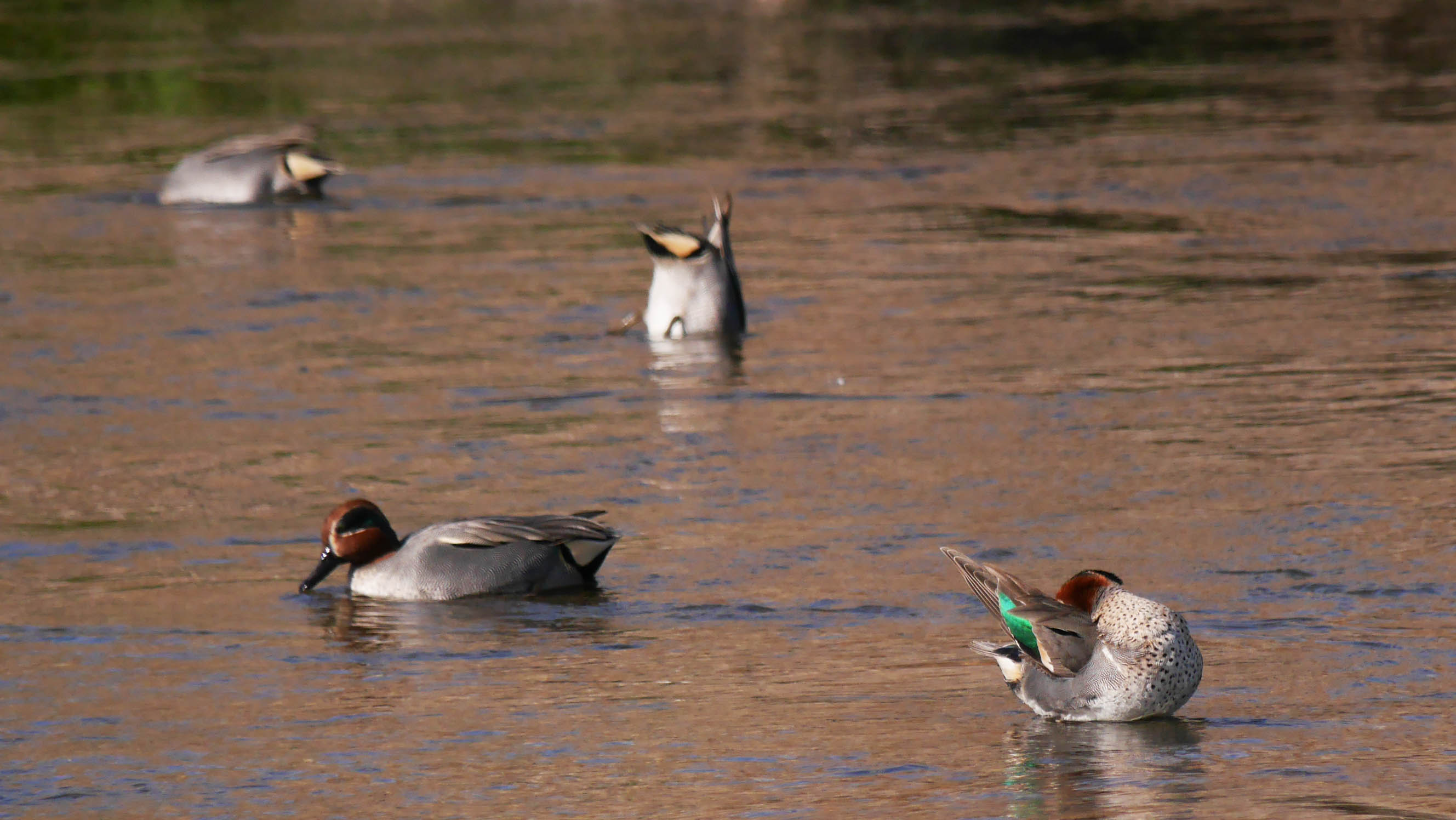 ・・胸の脇にある白い線の様な模様がアメリカコガモのオスの特徴です。