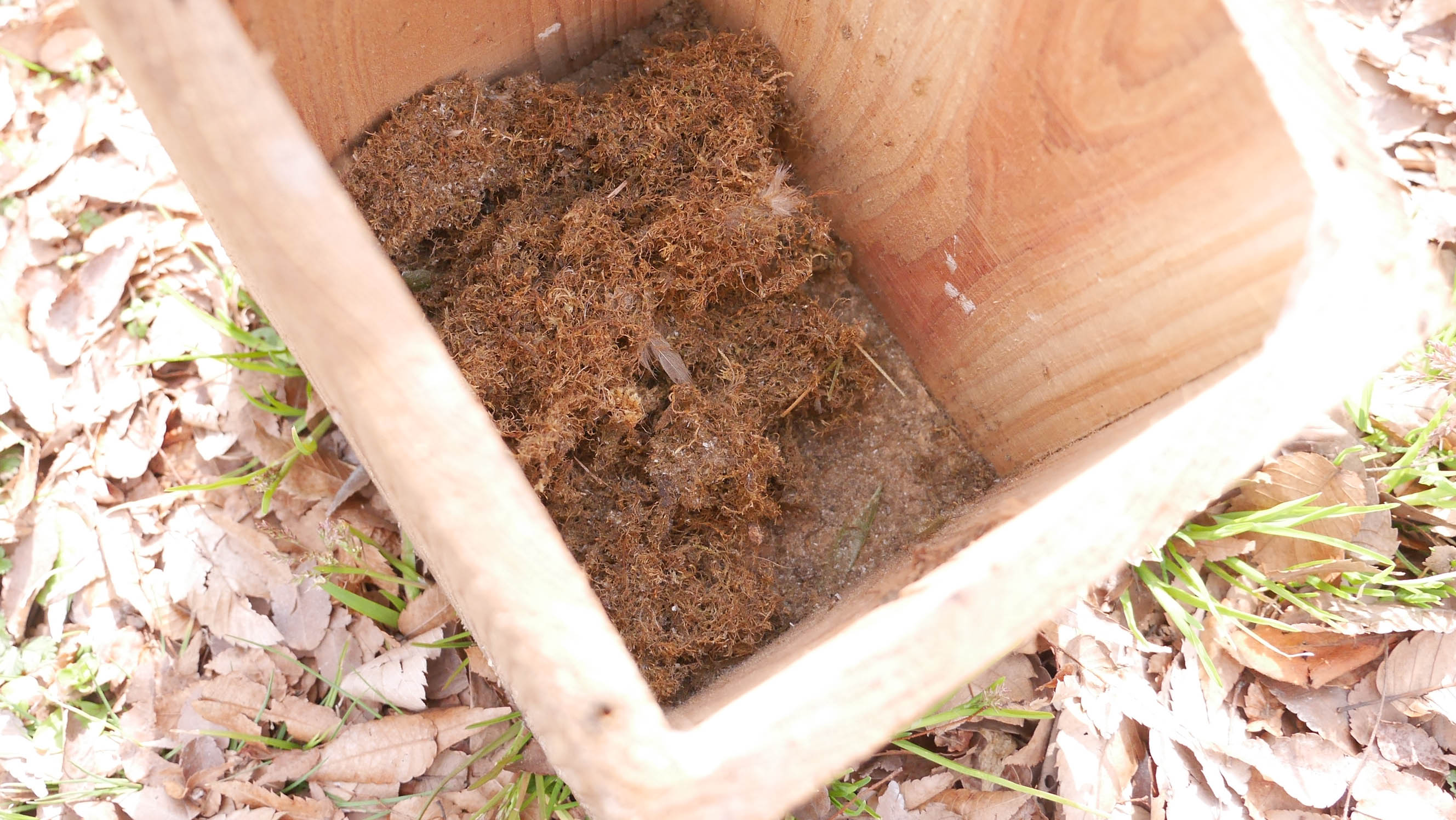雨に打たれない場所の巣箱内、苔なども腐っていませんでした