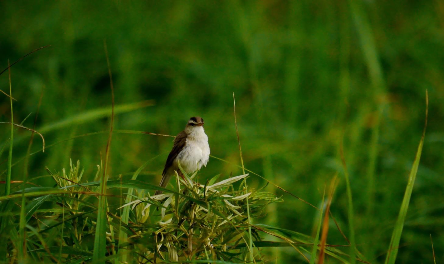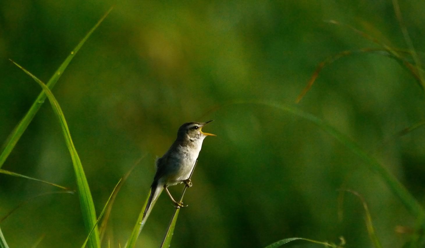 高原で囀るのはコヨシキリ。低地の川原などで囀るのはオオヨシキり。