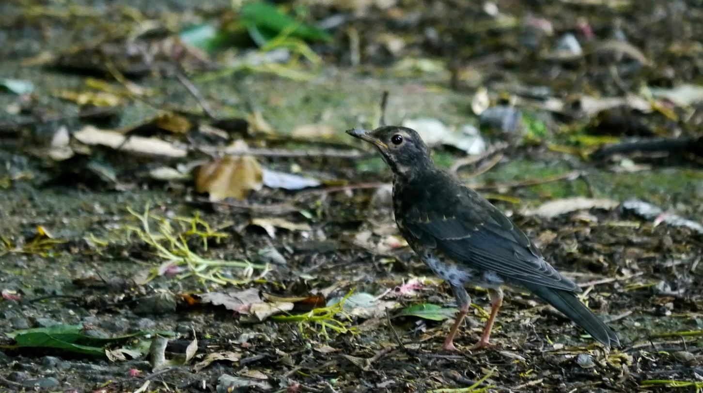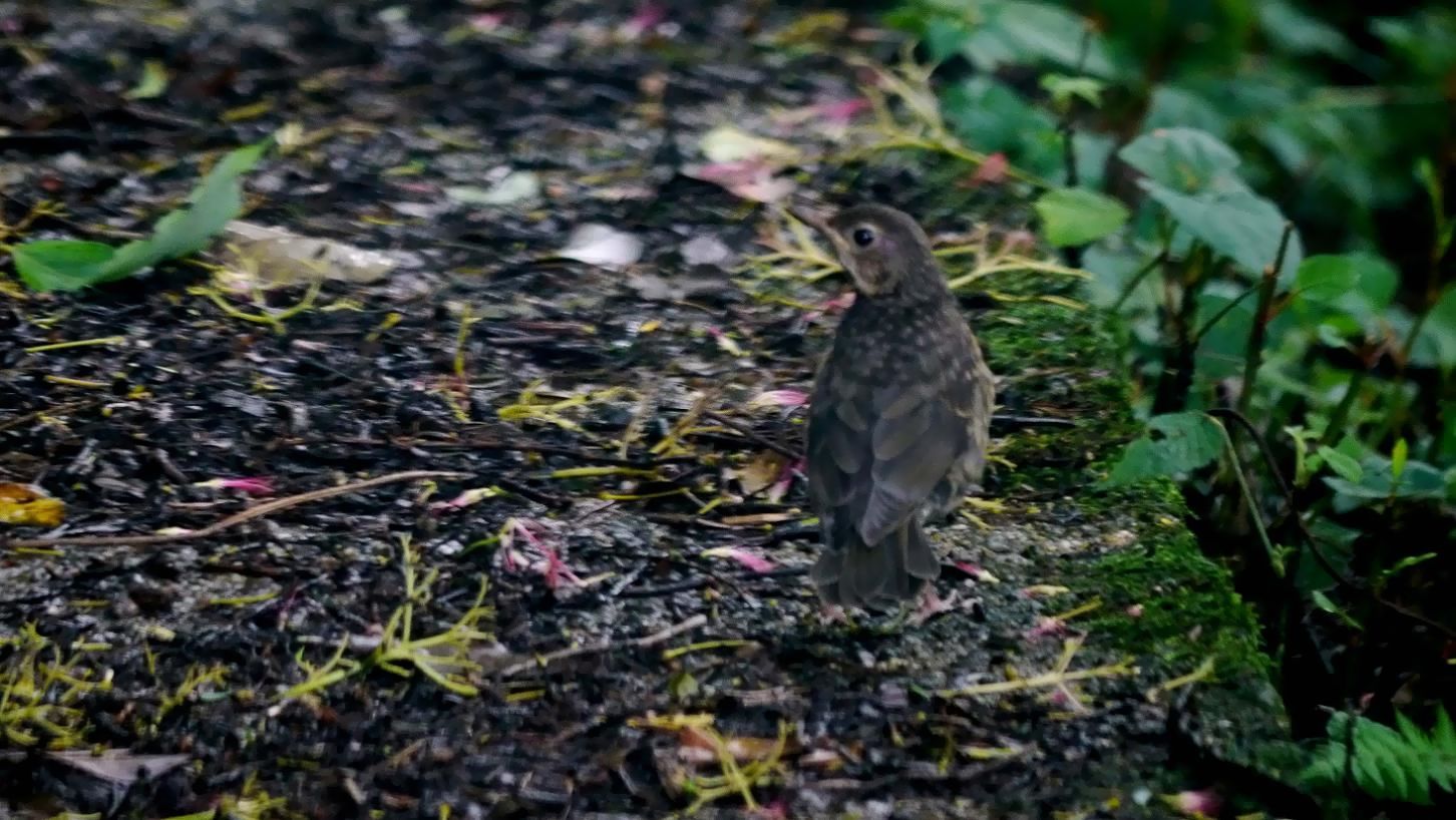 お父さんが去って30分くらいしたら、今度はメスのクロツグミで、お母さんが来ました。動きが早く直ぐに去ったので、お母さんは撮影に失敗してしまいました。