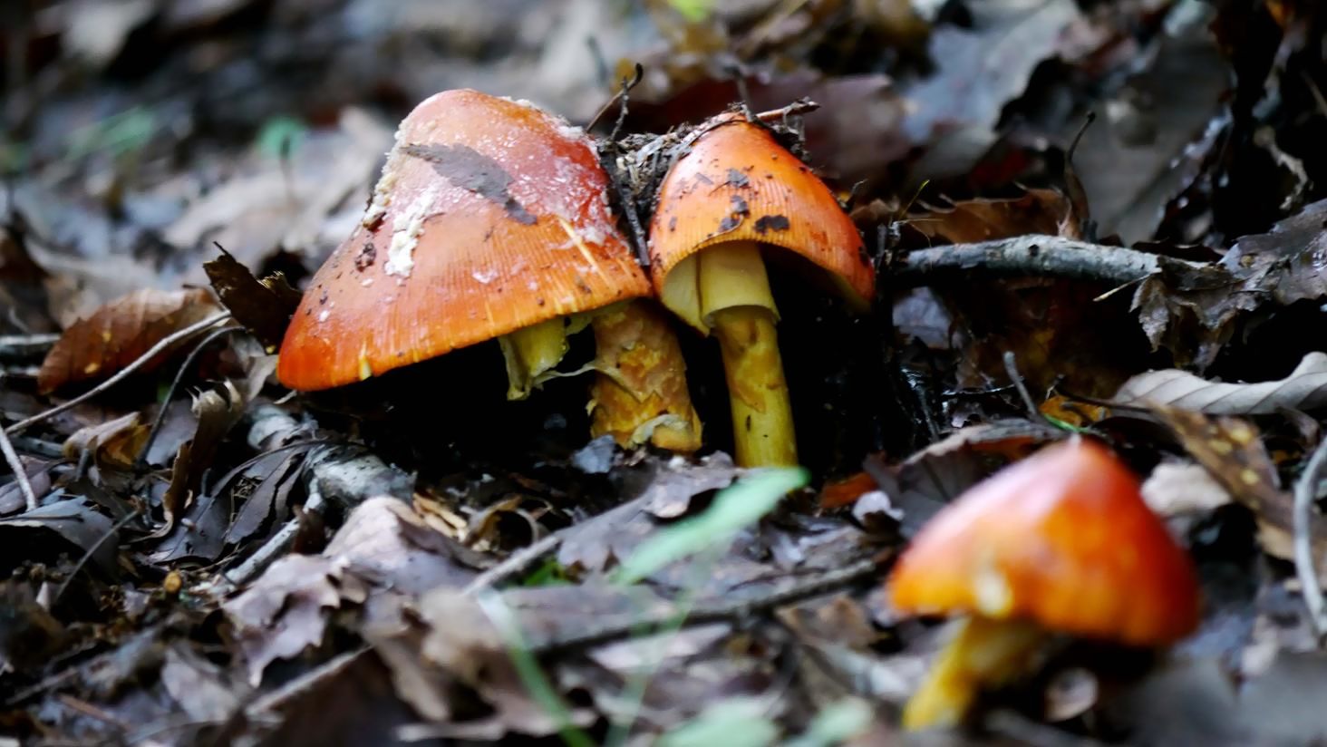 雨の止んだ午後、坊主山と青少年の森でタマゴタケを見つけました。