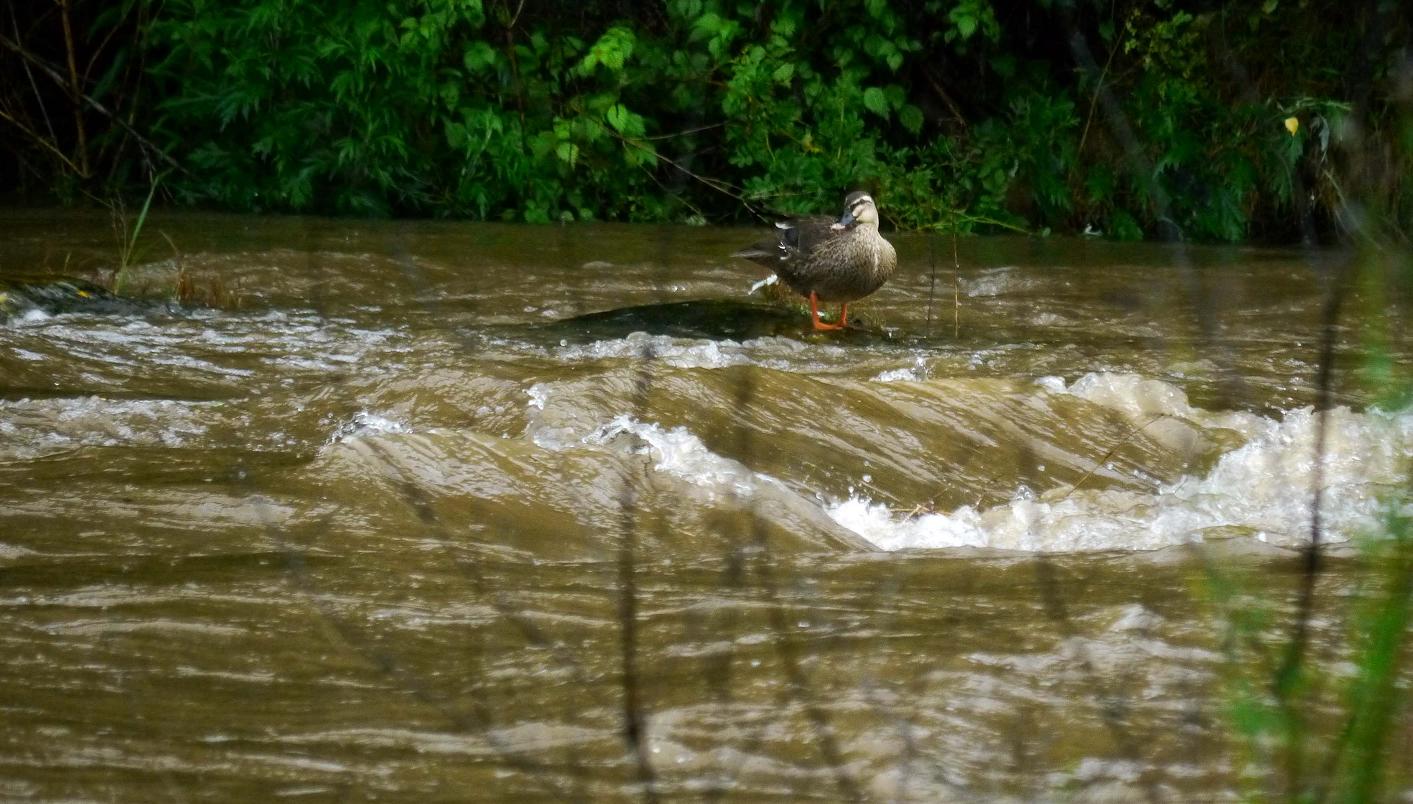後、70cmくらい水かさが増すと、抱卵中のウグイスの巣が流されます。