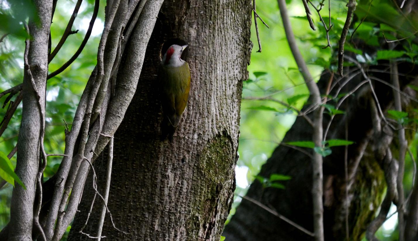 アオゲラは抱卵中。