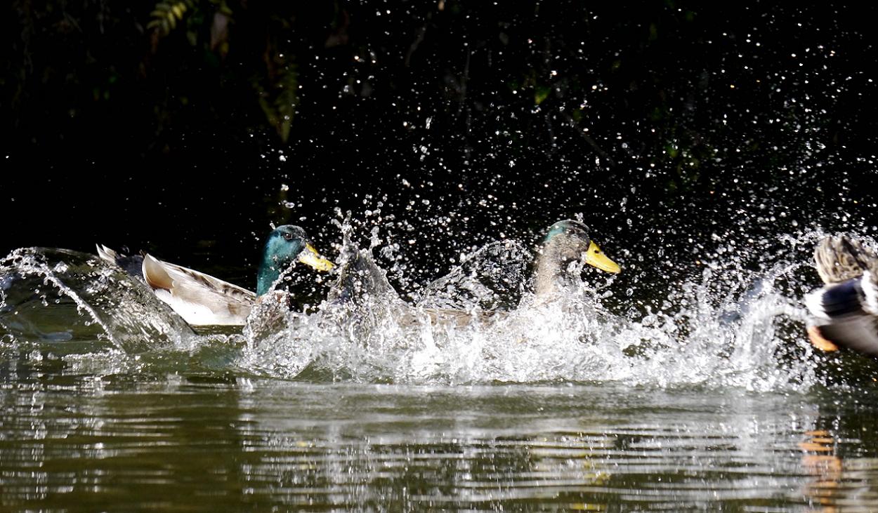マガモのオスとオス若・・・「か・かあちゃ~ん!何処行くん?」