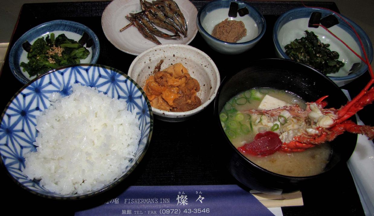 1000円朝食は伊勢海老の味噌汁付き。サラダも出ました