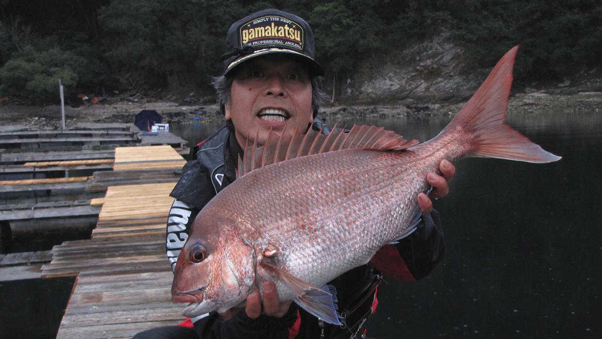 オキアミ生1匹掛けでは小型アジとウミタナゴのみ、オキアミ2匹掛けで3.96kgのマダイを16時の納竿20前に取り込む事に成功しました。猪熊君のチヌ狙いは不発、マダイらしき一発はあったのですが・・・。
