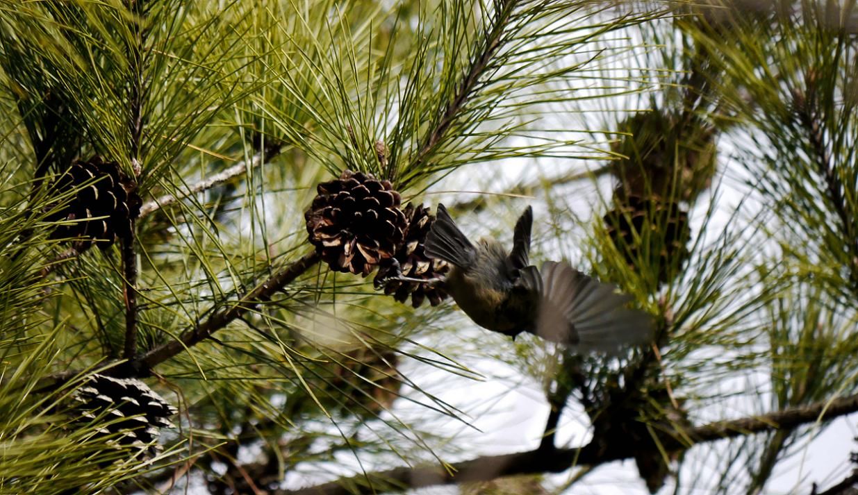小さな身体で動き回っており、一時も落ち着いてくれません。おまけに松の葉っぱの間や枝葉の中を動き回っています。しかも高い場所から降りてくるのは稀だから、絵にする事が難しい鳥です。