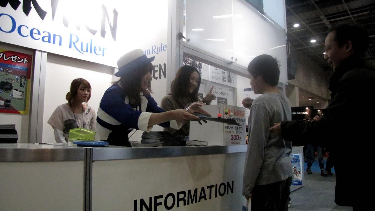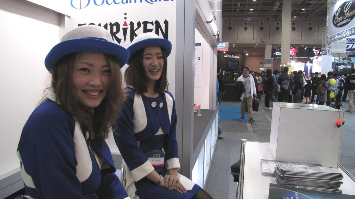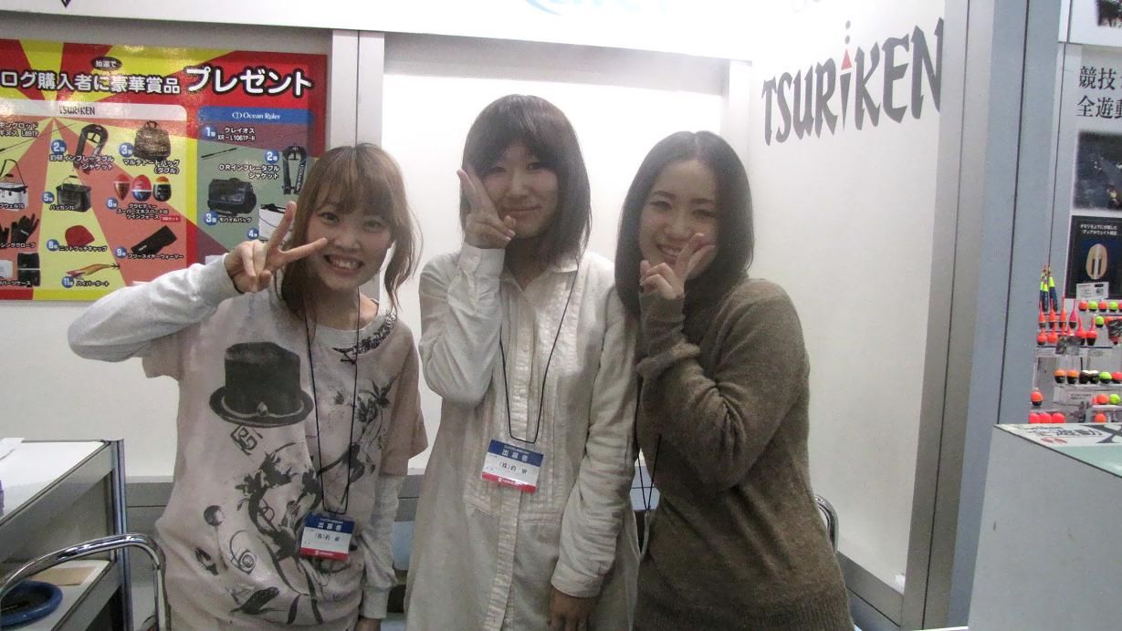 釣研ブースのインフォメーションで働いていた彼女達、笑顔が可愛くて色んなお客様に対しても立派な対応でした。
