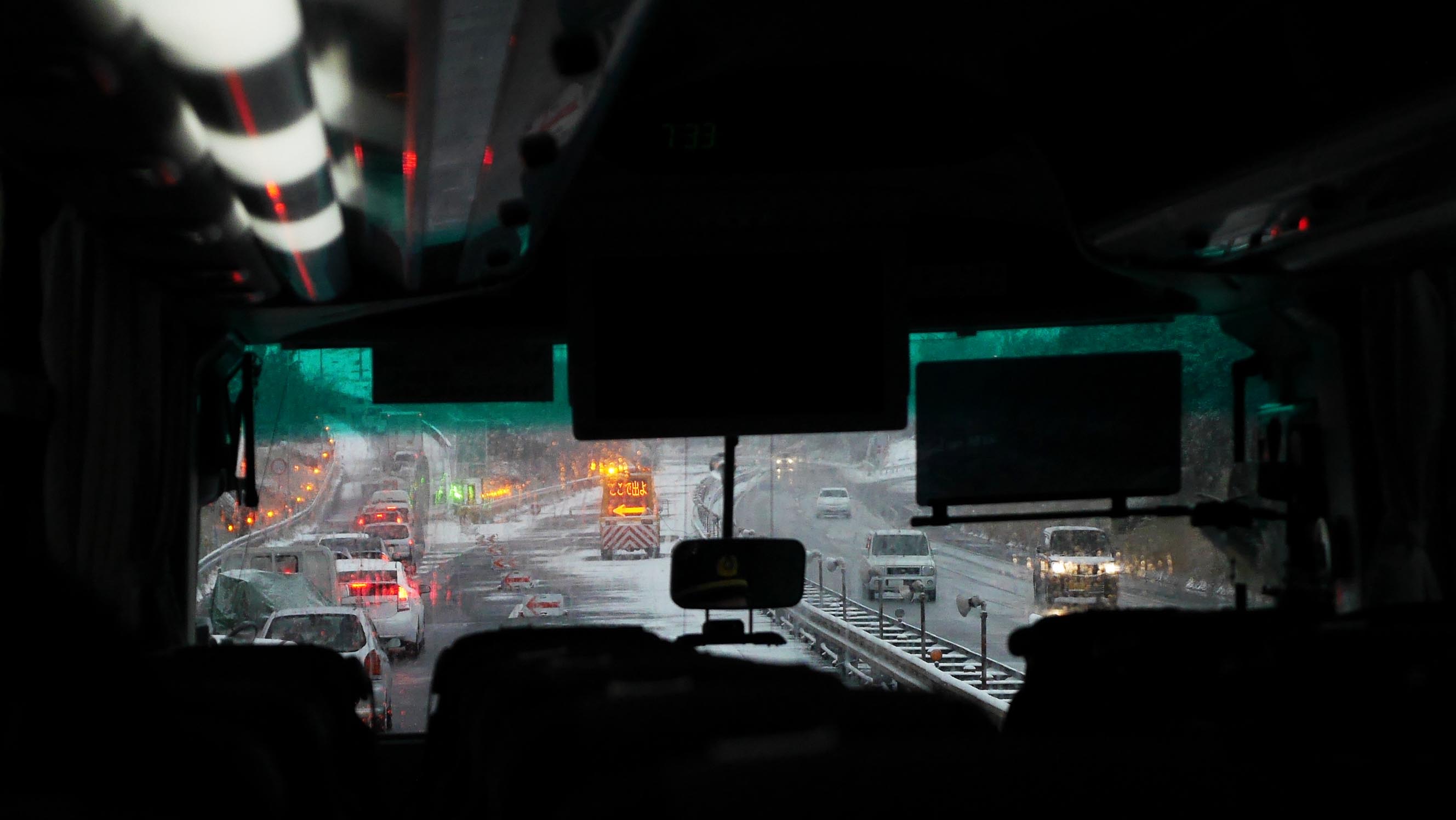 大分の由布院から日田までは高速道路が白かった