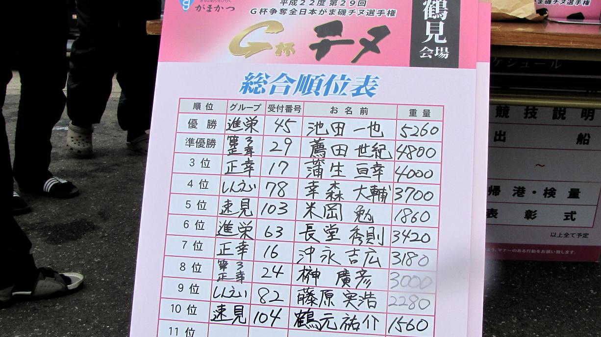 釣果にばらつきもありましたが、5杯の船の1位5名が全国大会の切符を手に入れました。