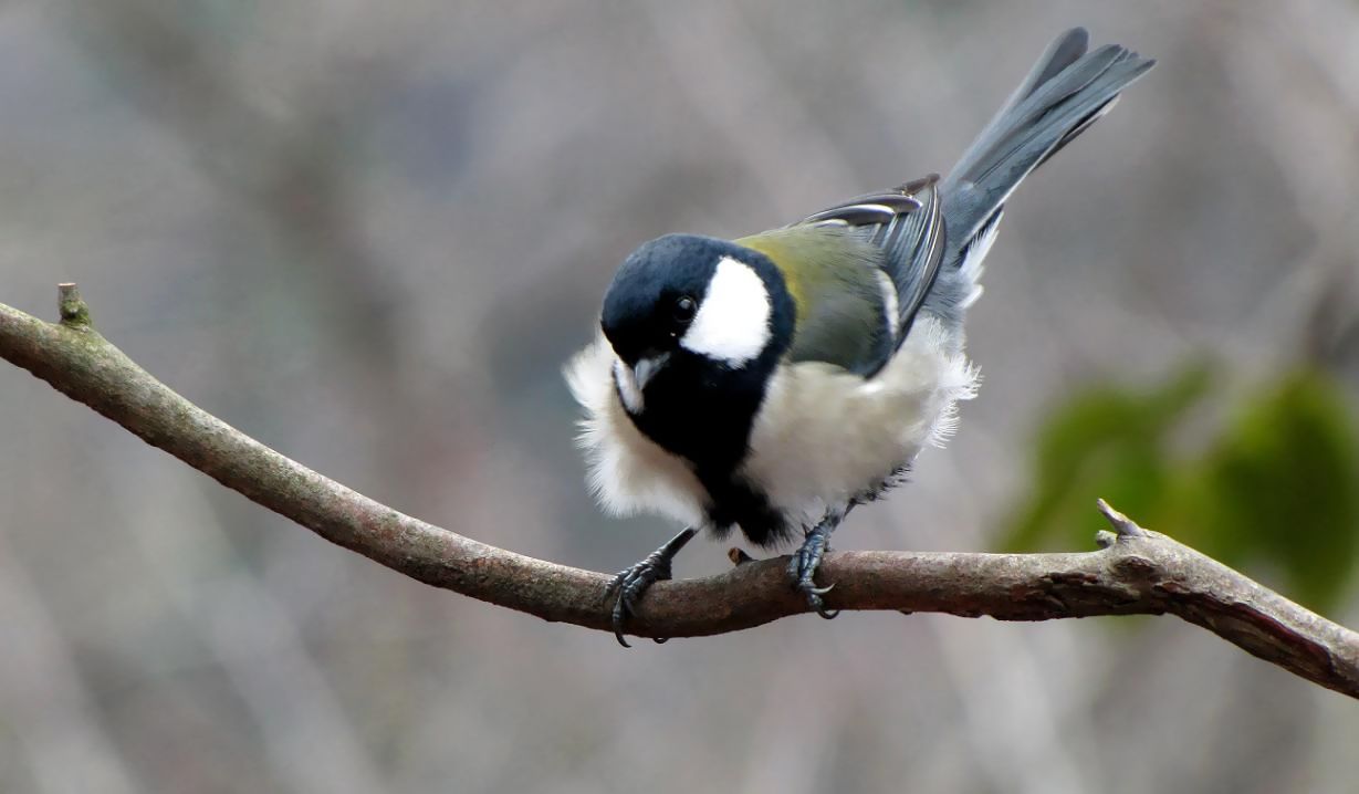 坊主山のシジュウカラは元気に過ごしています。山裾から吹き上げる風は冷たく、春の風とはいってもまだまだ柔らかくありません。小鳥達は寒いと羽毛を立てて膨らませ、空気の層を厚くして寒さを凌ぎます。