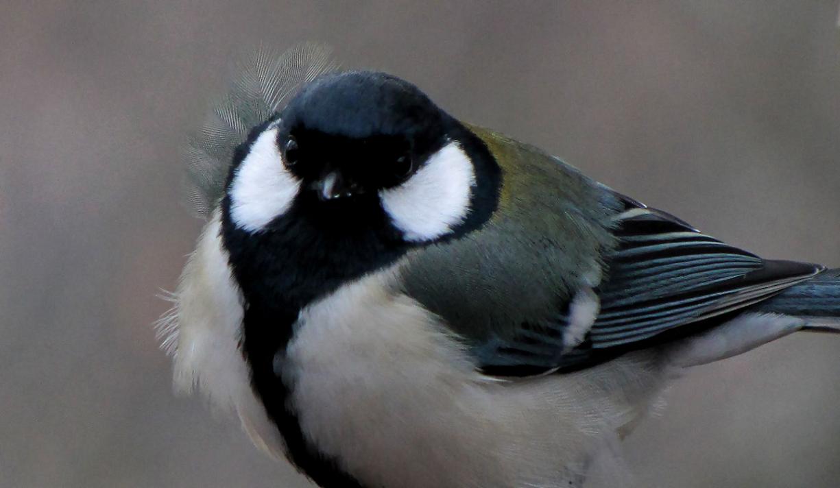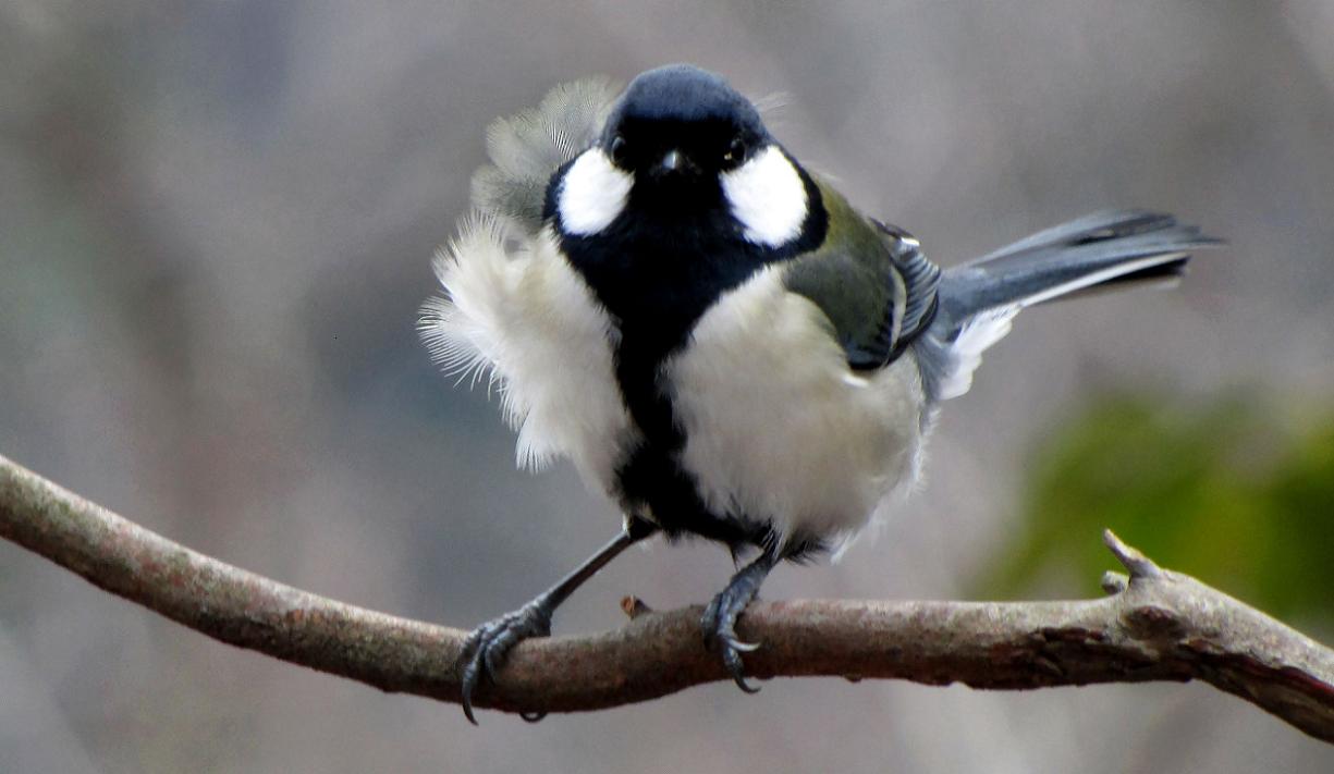 風が小鳥達の後ろから強く吹くと、この写真の様になります。寒いとは思いますが、シジュウカラのオスは元気一杯でした。