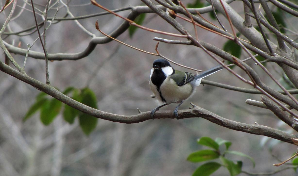 シジュウカラのメスは、首周りと喉から腹に続く黒のネクタイが細く、オスは比較的太いネクタイをしています。警戒心が相当に強く、危険を察知する能力に優れており、群れで一緒に行動するメジロやカラ類の仲間たちを守っています。