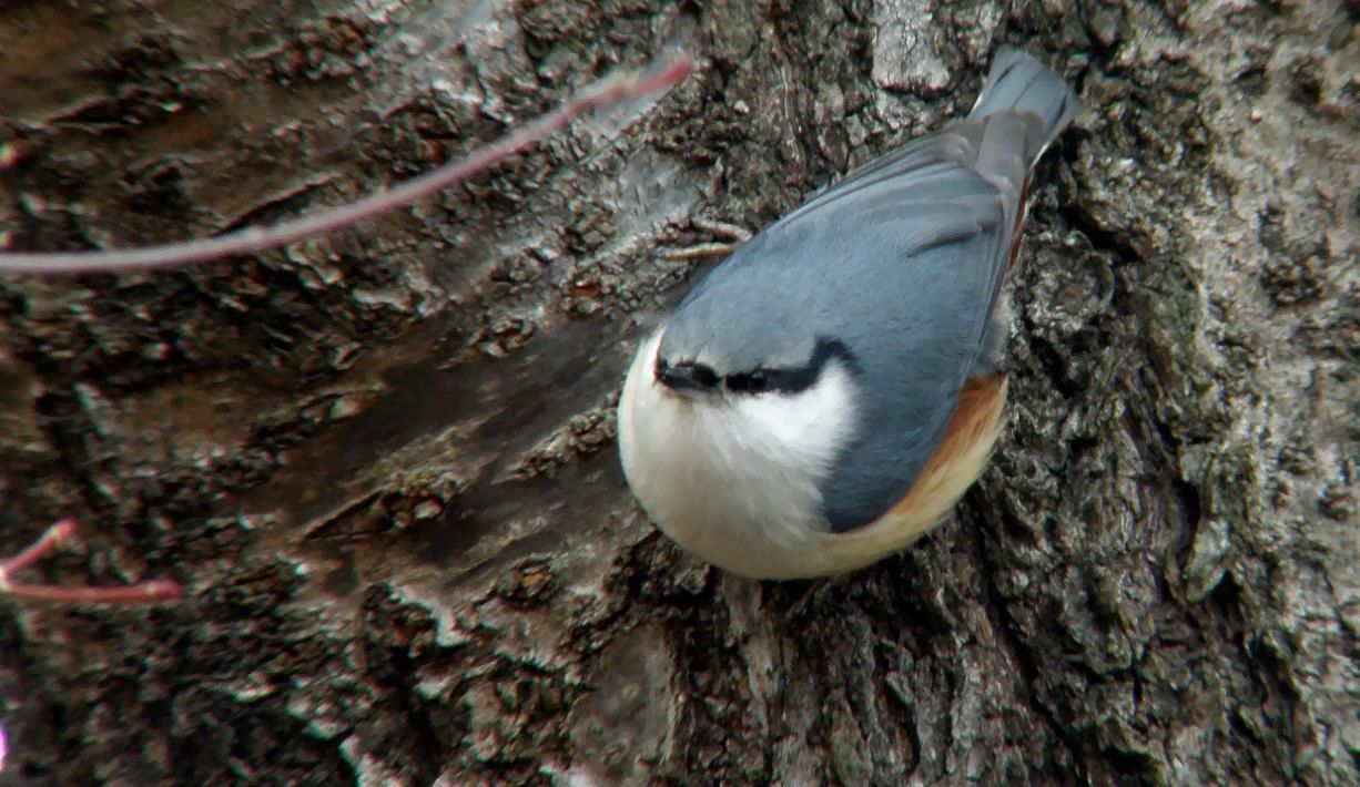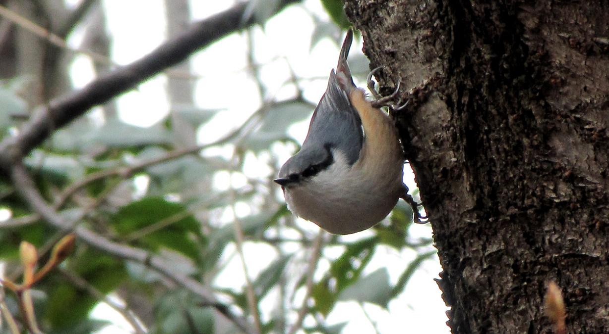 木を逆さまに歩いて降りてきて、飛び立つのも早い。他の鳥は逆さ歩きは出来ません。他の鳥は飛び立つ時、少し屈んで飛び立つけど、この鳥はそんな仕草を見せず、そのままの姿勢から飛び立ちます。・・・相当に脚の強い小鳥です。