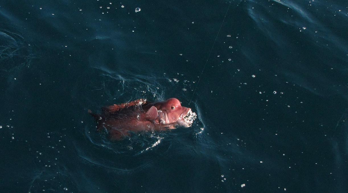 カンダイの型としては物足りないものの、普通の大きさだったので関係者に連絡したところ、帰港時間の30分後に受け取りに来てくれるとの事。ワイヤーストリンガーで活かし、帰港時にはバッカンに水を張って船に積み、帰港後は船着場で活かしていました。