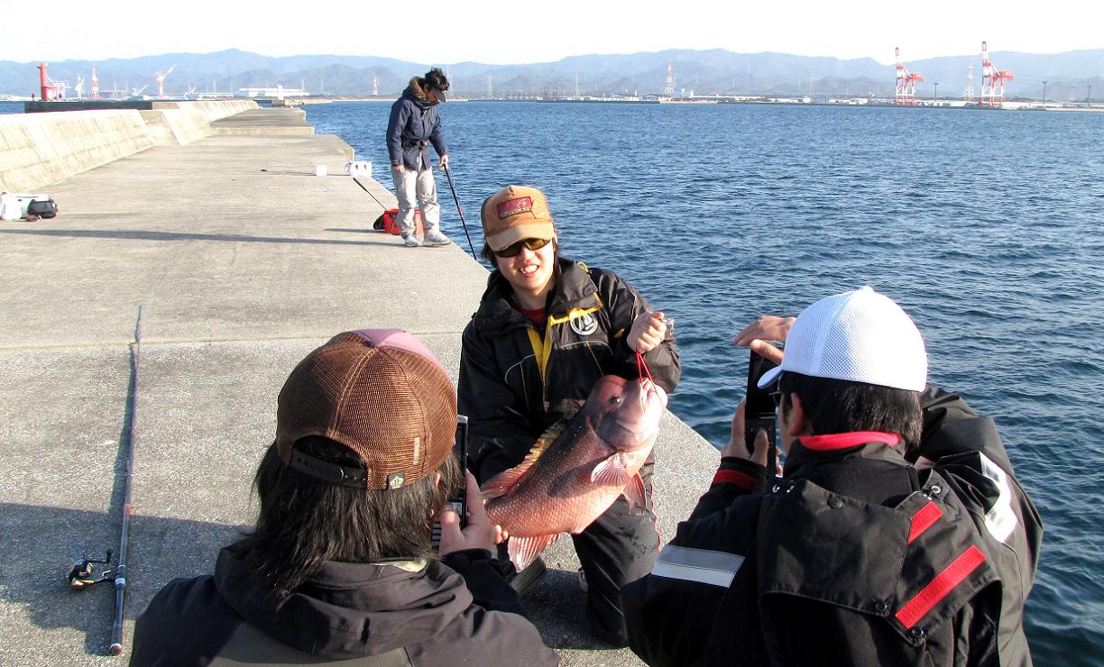 坂口君・岩室君・畦地君の三人と、久しぶりのカンダイ釣りです。