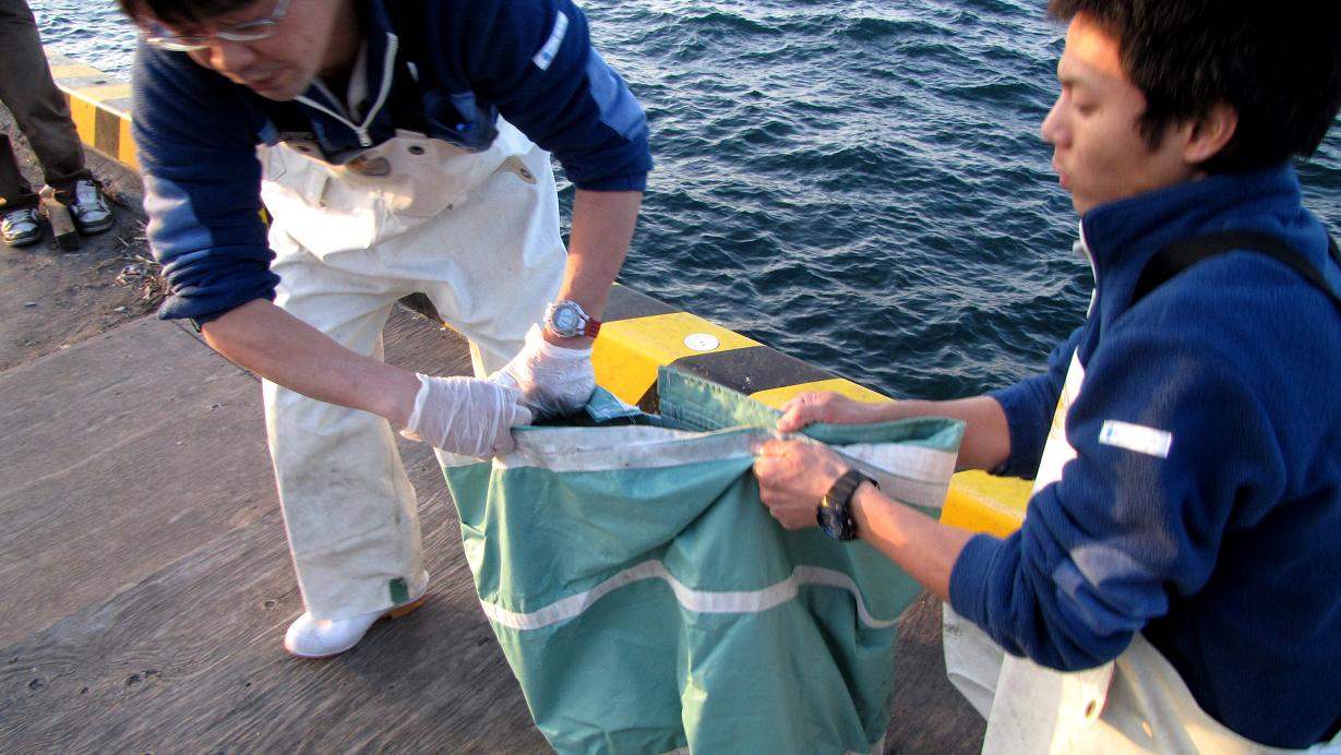 うみたまごのスタッフは、手際良くカンダイを処置しました